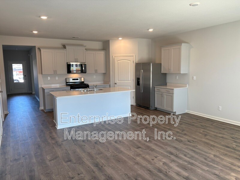 This is NOT a furnished home. These pictures show a furnished house to convey how this home COULD be furnished. Please be aware that NONE of the furnishings pictured here will remain in the property upon its rental. The appealing one-story home includes many contemporary features, and an open-concept design and 9’ ceilings enhance the wonderful feel of this home. The kitchen includes a large island perfect for bar-style eating or entertaining, a walk-in pantry, and plenty of cabinets and counter space. The dining room and living room both overlook the covered porch, which is a great area for relaxing and dining al fresco. The large Bedroom One, located at the back of the home for privacy, can comfortably fit a king size bed, and includes an en suite bathroom with double vanity, big walk-in closet, and separate linen closet. Three other bedrooms share a second bathroom. The two-car garage connects to the front hallway where the laundry room and an extra storage closet are also located. Pictures, photographs, colors, features, and sizes are for illustration purposes only and will vary from the homes as built.