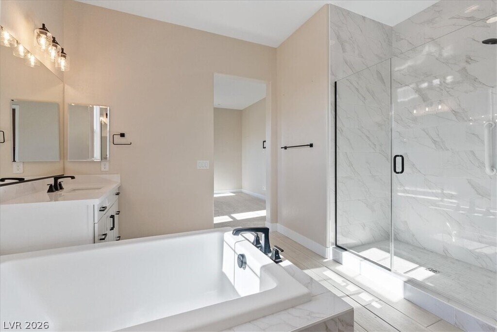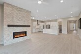 Discover this nearly new single-story home in Lake Las Vegas, showcasing stunning mountain views from most rooms. Inside, enjoy soaring 10' ceilings, elegant 8' doors, and a bright, open layout highlighted by a cozy gas fireplace. The gourmet kitchen features GE Plus stainless steel appliances, quartz countertops, a stylish tile backsplash, a walk-in pantry, and a large island with breakfast bar—perfect for cooking and entertaining. Step outside to your private backyard retreat with a spacious covered patio, BBQ stub, fresh landscaping, and relaxing hot tub overlooking the mountains. The deluxe primary suite offers a spa-like bath with dual vanities, walk-in shower, soaking tub, and generous walk-in closet. Additional highlights include ceiling fans in every room and access to the resort-style Lake Las Vegas lifestyle, with nearby dining, shopping, golf, and water activities.