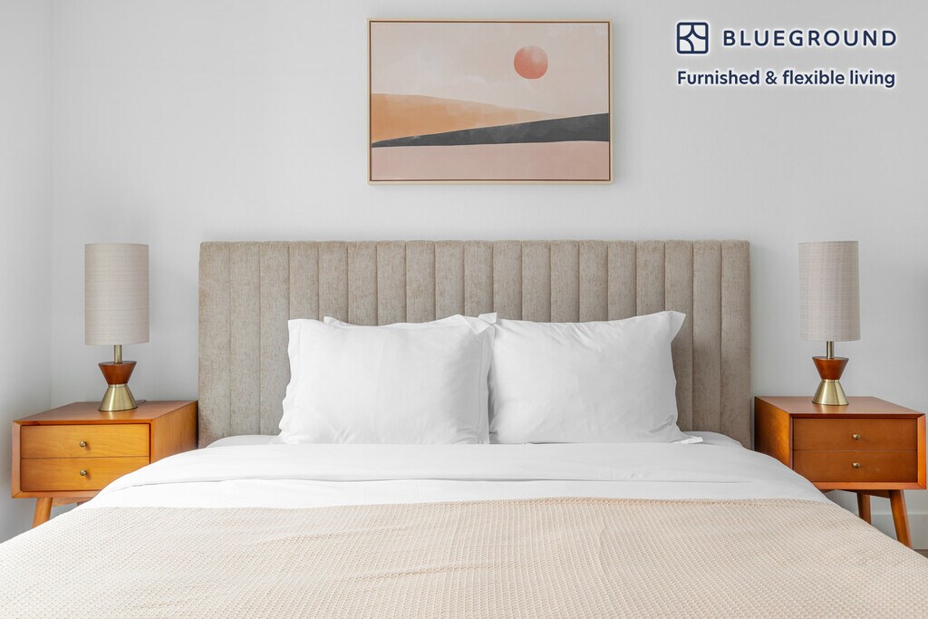 Show up and start living from day one in Pleasant Hill with this beautiful two bedroom Blueground apartment. You’ll love coming home to this thoughtfully furnished, beautifully designed, and fully equipped Pleasant Hill home. (ID #SFO2110) The advertised rate of $2,040/month is the lowest available price, based on a 1 month(s) and 3 day(s) stay with a move-in date of December 31, 2026. If you’re looking for a 1-year stay, the rate is $4,180/month. Rates vary depending on the duration of stay, season, and other parameters. For exact pricing and additional pricing components, please visit our website and enter your desired move-in and move-out dates. The rate is applicable when billed upfront; it can be higher if billed in multiple payments. Brokers are welcome to reach out. Were you looking for an unfurnished lease? Try Blueground instead and upgrade from unfurnished to furnished living: - Furnished at rates comparable to unfurnished - No setup or furniture costs - save thousands - Move-in ready - save time, just bring your suitcase Designed with you in mind As with any Blueground apartment, you’ll find a thoughtfully designed space complete with beautiful furniture and a fully equipped kitchen in this two bedroom property. And, thanks to our superior quality mattresses, luxury linens, and towels, you can relax knowing you’ll always feel comfortably at home. When you’re ready for some fun, you can take in the Pleasant Hill vibes or bring the entertainment to you with the premium wireless speaker or smart TV. This apartment also offers in-apartment laundry. Sleeping arrangements King Bed, 70.8in/180cm Queen Bed, 63in/160cm Amenities Building amenities unique to this two bedroom apartment include an on-site: - BBQ Area - Dryer - Elevator - Swimming pool - Washing machine - Lounge - Parking - Pets allowed Arrival and ongoing support The entire apartment is yours to enjoy! Throughout your stay, you’ll have access to our Client Experience team through the Blueground App. You can schedule additional cleanings, submit maintenance requests, and view our neighborhood recommendations with just a few taps. We’ll share all details upon confirmation of your stay. Other things to note Building amenities may have an extra cost. This Blueground apartment has flexible lease options, allowing you to book it for one month, a year, or more. Pets are welcome, though weight limits and breed restrictions apply and may incur fees. Parking is offered based on availability and is subject to a fee. We take great pride in ensuring every photo displayed is shot in our own units with our actual furnishings. That said, we regularly refresh our decor and furniture arrangement, which may differ from what’s pictured. [SI]
