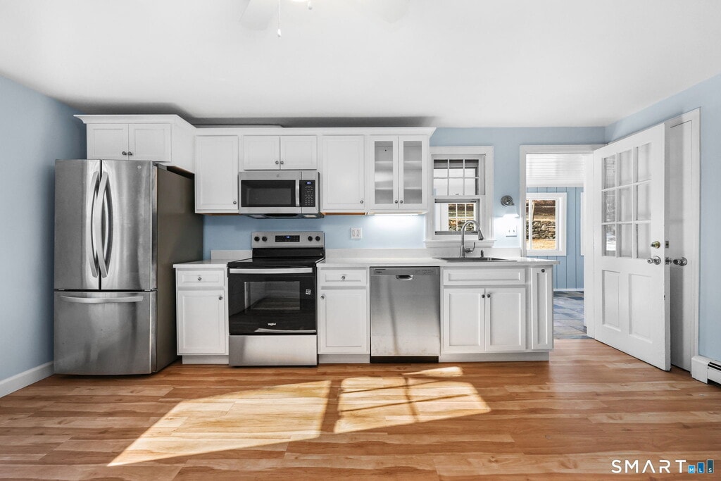 Call for Availability - Totally renovated carriage house-style home set on an officially designated scenic road" in a great commuting location. This cleverly designed home lives much larger than the square footage suggests. Pull up the driveway and be wowed by the picturesque country setting. Park in the ample driveway or open one of the brand new garage doors and pull right in to the freshly painted, immaculate garage. Upstairs relax and enjoy fresh paint throughout, refinished hardwood floors, charming architectural features, and tons of natural light. Cozy up to the fireplace in the welcoming front living room or prepare a delicious meal in the brand new kitchen. Timeless white cabinets, stylish quartz tops, and elegant stainless steel appliances are ready for you. Toss in a load of laundry while you're cooking. Down the hall retreat to one of the 2 good-sized bedrooms and brand new white full bath. Through the kitchen is a gorgeous 3-season room with elegant stone floors that spans the entire back of the home. It overlooks the inviting back patio and handsome stone retaining walls which create a very private outdoor entertaining space. Back inside continue upstairs to the finished attic space which is tucked under the eaves and is well-suited for an office or studio. Enjoy all of these wonderful features plus Easton's hiking trails, local farm markets, pickle ball courts, dog park, and classic New England setting." MLS# 24158583