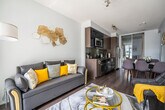 Feel right at home in this open-concept gem located at Yonge & Eglinton, just steps from the subway. This comfortable suite has everything you need. The fully functional kitchen is stocked with tea, coffee, a kettle, a coffeemaker, and a toaster. There is also a washer and dryer with supplies, and two bathrooms with towels, shampoo, conditioner, body wash, a hair dryer, and other toiletries. Paid underground parking with in/out privileges is available upon request for $25 per night and it's recommended to request it in advance as vacant parking spots may be limited. Pets are allowed with a fee of $10 per night for one pet. A travel crib (for babies 0-18 months) and bed rails are available for $5 per item per night and should be booked in advance. Guests have access to the indoor swimming pool, sauna, hot tub, steam room, and gym in the building. Surrounded by restaurants, movies, and shopping, this apartment is in a prime location. According to the condo rules, information about guests must be provided to the condo management prior to arrival, including each guest's name and ID details, and vehicle and license plate numbers (if parking is required). Guests whose names or ID do not match the information given are not allowed into the building. Guests must be 18 or over in order to check in. [SI]