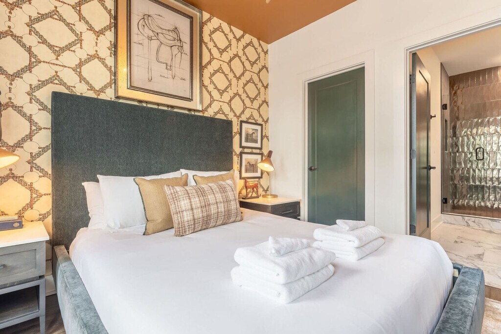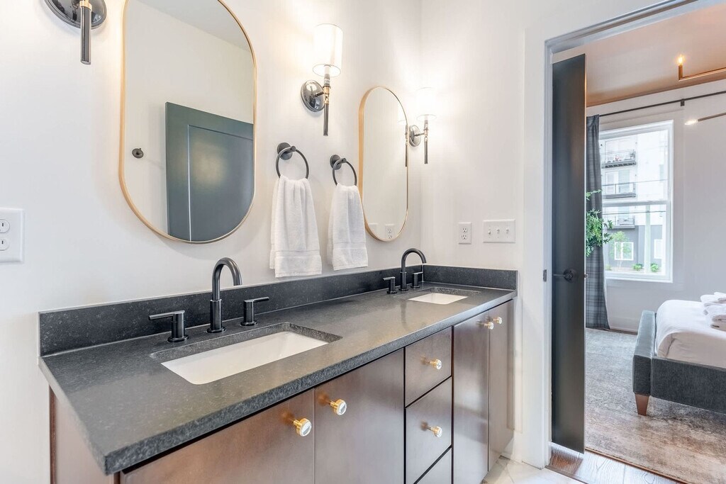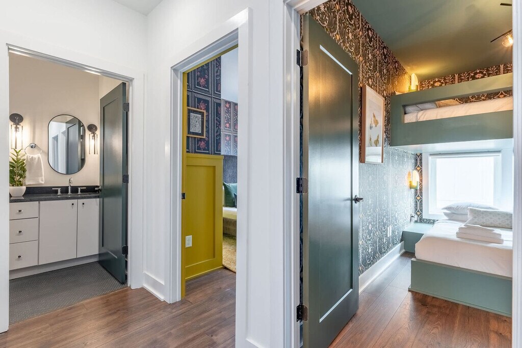 Feel at home in this luxury Nashville retreat, Glow & Gather, featuring a rooftop fire pit and skyline views just 3 miles from Broadway. Designed for groups, this home is perfect for bachelorettes, families, and friends. Glow & Gather combines bold design with group-ready comfort in The Lucy, a luxury vacation community near East Nashville and Germantown. This home offers a chef’s kitchen with quartz countertops and seating for 14 guests, memory foam mattresses, custom darkening drapes, curated custom art, bold design features, a coffee station with drip and pod options, USB charging stations next to every bed, central climate control (AC + Heating), a secure smart lock keyless entry, premium linens and towels, a stylish living room with smart TVs and Wi-Fi access, a washer and dryer in unit, built-in makeup and getting ready areas, and an outdoor rooftop dining and lounge space. Private garage parking with 2 spaces is available (Note: Vehicles over 19’ will not fit). Free street parking is also available. Welcome to the vibrant neighborhood surrounding Glow & Gather at The Lucy! This dynamic area is just a stone's throw away from downtown Nashville, bustling with energy and excitement. Explore nearby hotspots like trendy East Nashville or the historic Germantown district, where you can discover local boutiques, art galleries, and charming cafes. Indulge in Nashville's renowned culinary scene by dining at top-rated restaurants such as The Southern Steak & Oyster or Husk Nashville, both located just minutes away. With easy access to main roads and public transport, exploring Nashville's landmarks is a breeze from 'Nash Eras.' Smoking is prohibited inside the property or near open doors or windows, and a minimum $500 fine applies for violations. Quiet hours are 10pm–8am on weekdays and 12am–8am on weekends. Registration Number: [SI]