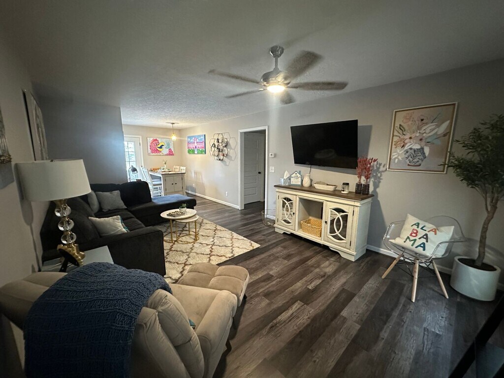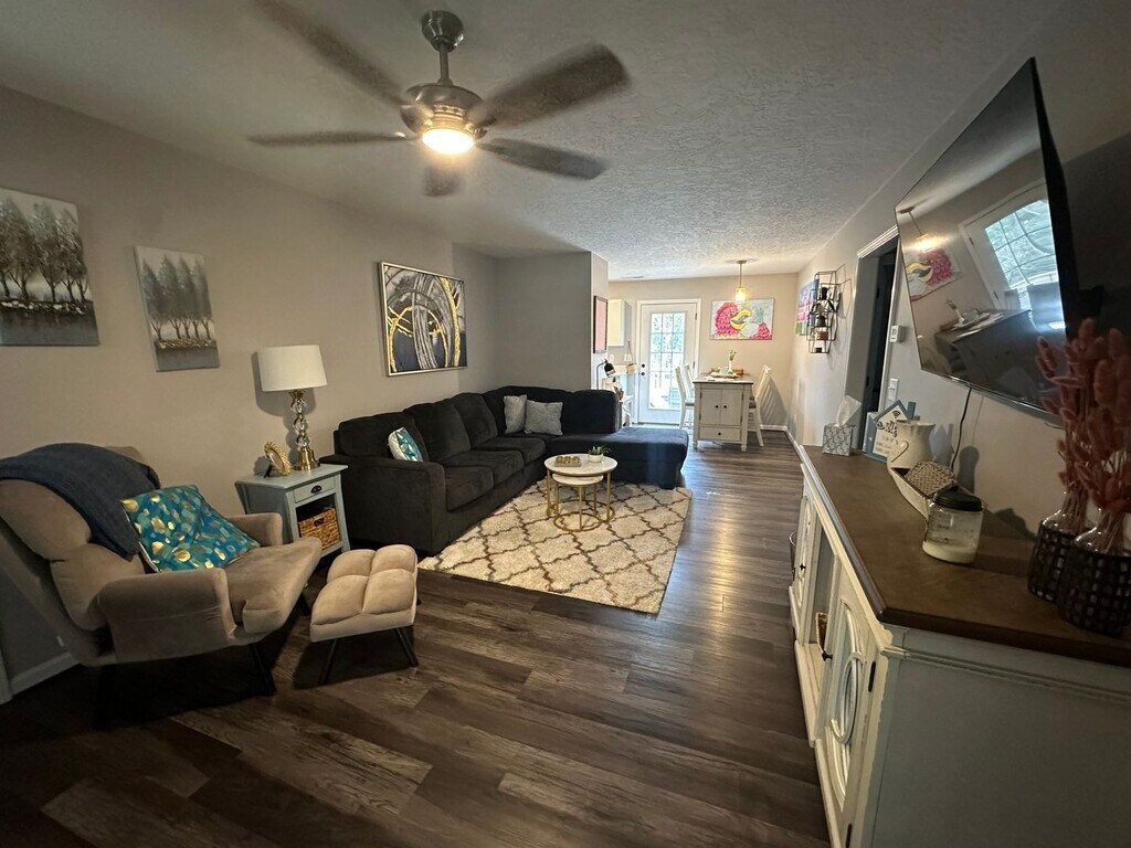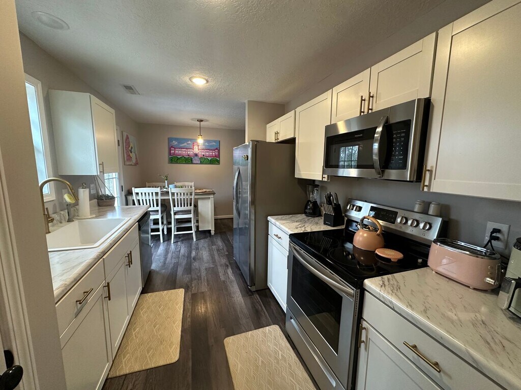 Beautiful 3-bedroom, 2-bathroom home featuring hardwood flooring throughout and a functional, open layout. The kitchen has stainless steel appliances, offering both style and convenience for everyday living. Step outside to a large back deck — perfect for entertaining, relaxing, or enjoying outdoor dining. Additional storage space located under the deck provides extra room for tools, lawn equipment, or seasonal items. Disclaimer: The property is staged. All staging items and furniture are not included in the rental and will be removed prior to move-in.