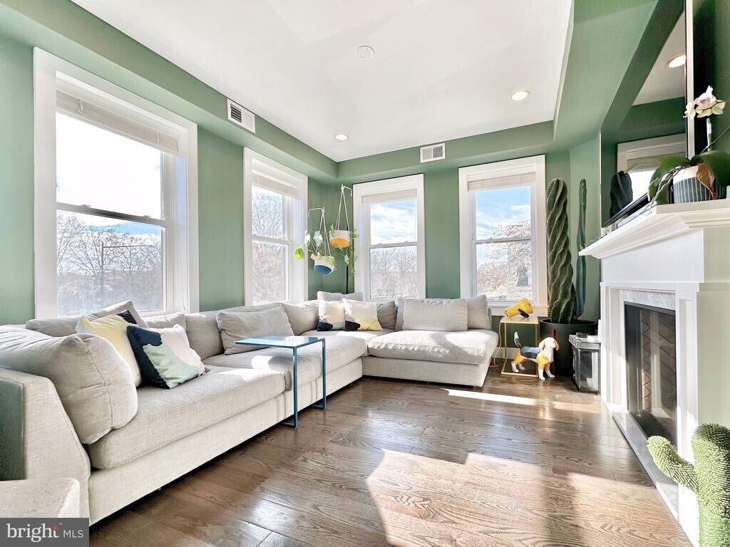 Available Nov 5th! Fun, bright, and spacious corner rowhouse located in vibrant Bloomingdale. Built in 1895 and fully renovated in 2019, this large 4BR/3.5BA semi-detached house has over 2,550 sq ft over 4 levels and two private outdoor spaces including a large patio off the main level for entertaining with a hot tub and gas hookup for grilling AND a peaceful rooftop deck with expansive city views! You'll love cooking and entertaining in the huge gourmet, eat-in kitchen with large waterfall island and downdraft gas cooktop, accented by an antiqued mirrored bar; with Bosch appliances throughout. There is also a bright corner living room for hosting and a cozy family room with a gas fireplace perched on the second level adjacent to the owner's suite. The owner's suite easily fits a king size bed, large nook for reading or lounging, perfectly sized walking-closet with builtins and a large ensuite bath with dual vanity, soaking tub and walk-in shower. To make life even easier, the laundry is also located on the second level. The third level features three bedrooms, one with ensuite bath, third bath and airy floating staircase with exposed brick and large skylight leading to the roofdeck. All systems were replaced during the renovation and each floor features its own HVAC. The unfinished basement features 800 square-feet for storage. You'll love the fully-fenced wrap-around yard with front and side gates. Across the street you have Big Bear for coffee or lunch, and the park which hosts the Farmer's Market on Sunday's, along with the adjacent playground. Minutes to BBQ and wine shops, and close to Trader Joe's and everything Union Market has to offer. A short distance to the I-395 tunnel and just around the corner from N. Capitol Street, you're also situated between two Metro stations for easy commuting. Tenant pays utilities; landlord pays lawn care and pest control. No smoking. Off-street residentially zoned parking.