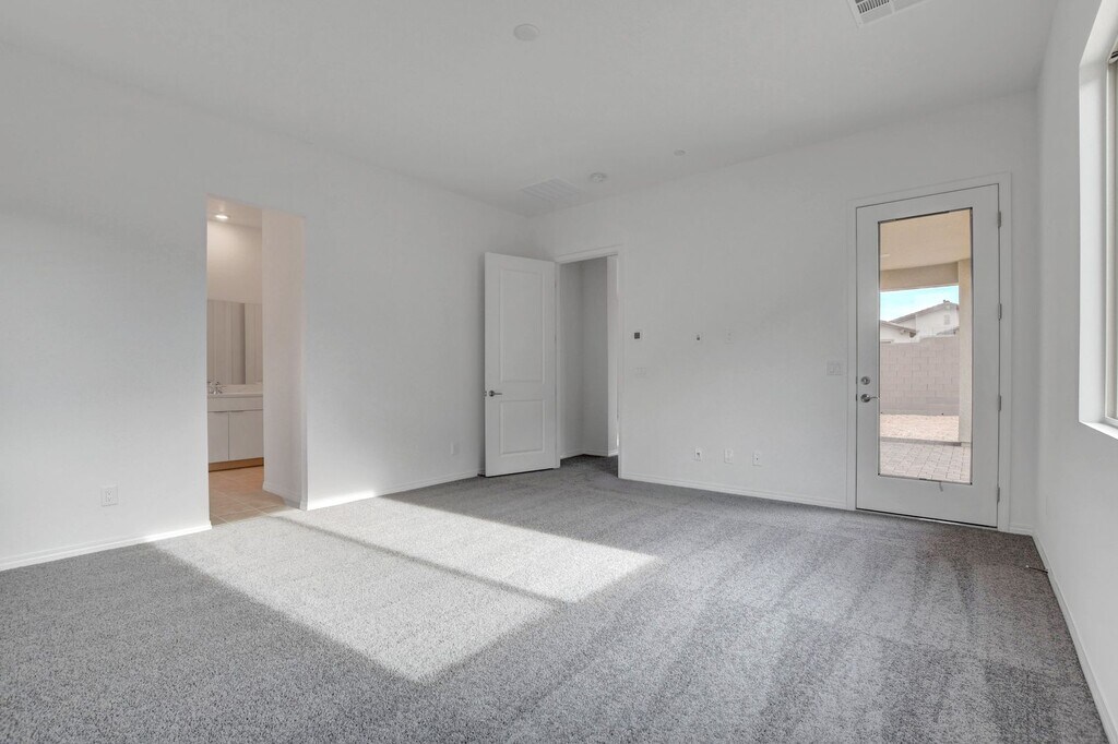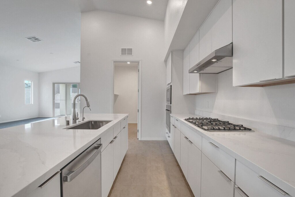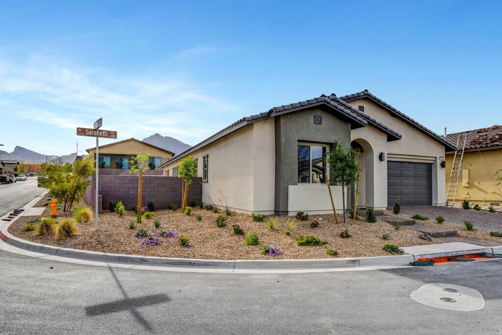 Premium corner-lot home with a large backyard in a gated Summerlin West community. Virtually brand-new, this contemporary SINGLE STORY home features an open-concept floor plan with vaulted ceilings. The expansive kitchen offers a large island with a touchless faucet and stainless steel appliances. Includes 4 bedrooms and 3.5 bathrooms with dual primary suites, a spacious laundry room with access from the primary suite, and a 2-car garage. Enjoy the covered stucco patio, tankless water heater, and more. A must see! Price includes $50 per month for: Trash and Sewer..