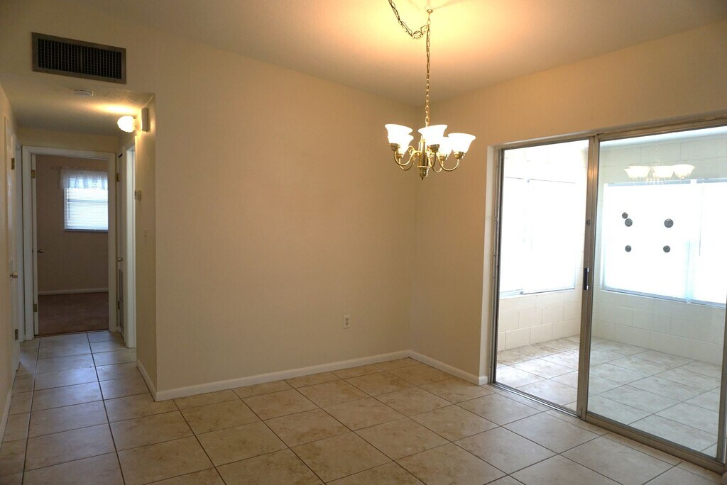 Available in June. Welcome home to this cozy rare find. 3br/1.5ba in established neighborhood with access only to the Private Beach Swimming area that is less than 1/4 mile walk to Lake Minnehaha Chain O' Lakes. Partially fenced backyard. Tile floors throughout main areas for easy cleaning and luxury vinyl to be installed in the 3 bedrooms. Well maintained home with rear screen room. Sweet galley kitchen boasts dark cabinets, refrigerator, smooth top electric range and microwave (no dishwasher or disposal). Ceiling fans in bedrooms. Stack bedroom layout. Inside laundry/utility room with additional shelving is ready for your own washer and dryer. From the sliding glass doors in the dining room you have an extra sitting area - bonus room. One car carport with work bench and extra storage space. Conveniently located to main highways and 1 mile to shopping center. Tenant is responsible for water, electric and full lawn care maintenance. Owner will consider one approved small-medium pet with non-refundable pet fee. Text or Phone Phyllis at or email