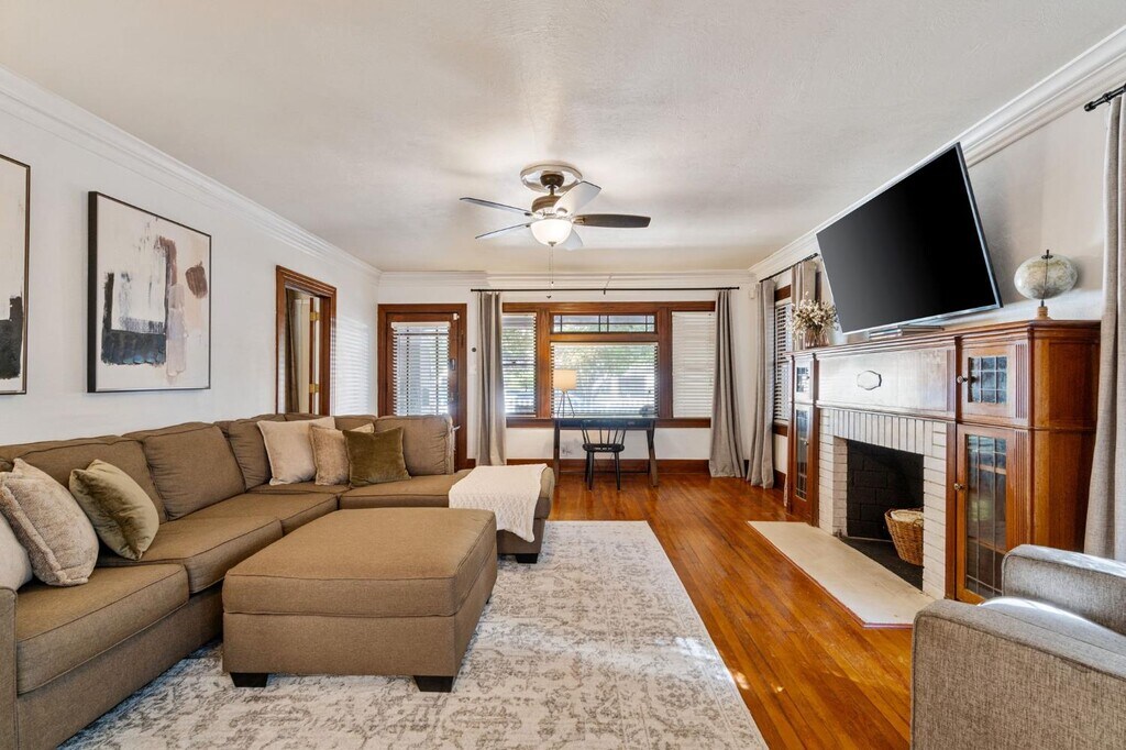 This rare rental find in Fresno's Tower District blends historic charm with modern updates in a warm and inviting Craftsman home complete with a white picket fence! Featuring three bedrooms and two bathrooms, the residence showcases original hardwood flooring, a formal dining room with beautiful original french doors, an updated kitchen with a gourmet chefs stove and thoughtfully designed bathrooms. Also enjoy the convenience of a basement area for added storage. A refrigerator, washer, and dryer are included for convenience.Outside, you'll enjoy a relaxing front patio, a wood deck in the back perfect for gatherings, large grassy area, and a tasteful landscaping with gardening service included. Modern comforts such as newer central A/C with a Nest thermostat provide ease of living year-round. Ring doorbell is also included!Located near Fresno City College and the lively Tower District, this home places you minutes from theaters, coffee shops, farmers markets, live music, and an eclectic mix of dining and nightlife. With its combination of historic character, thoughtful updates, and unbeatable location, this Craftsman is truly one of a kind.1 year lease is required. For a full list of our rental requirements, questions on the application process, or to schedule a showing, please contact our office. Furnishings are not included.