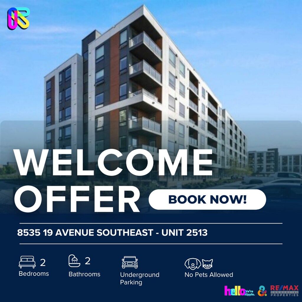 Modern 2 Beds, 2 Baths Apartment/Condo | No Pets Allowed | Monthly Rent for 12 Month Term Includes Welcome Offer Welcome to your new home at 8500 19 Avenue Southeast - Unit 2513 - Unit 2513 — a modern and well-maintained 2 beds / 2 baths / Apartment/Condo offering comfort, space, and convenience. Ideally located close to shopping, schools, parks, and transit. _____________________________________________________________ SHOWINGS: Conducted in an open-house format — book your appointment today! Prices, availability, and promotions are subject to change without notice. VIDEO TOUR: _____________________________________________________________ PROPERTY DETAILS: - Furnished or Unfurnished: Unfurnished - Pets: No Pets Allowed - Smoking: Non- Smoking - Parking: Underground - Storage Included: No - Laundry: In- Suite Laundry - Management Type: Placement Only - Lease Term: Long Term _____________________________________________________________ UNIT FEATURES: - Living Space:Open-concept living room layout, perfect for relaxing or entertaining - Kitchen: Sleek and modern kitchen with all appliances for a contemporary look with plenty cabinet storage to keep everything organized - Dining Space: Open-concept design flowing into the living space, perfect for entertaining - Bedrooms: 2 Bedrooms featuring ample storage for clothing and accessories - Window Coverings: Includes window coverings for privacy and light control ____________________________________________________________ UTILITIES: - Utilities Included: Heat,Water Here's a helpful tool you can use to get a rough estimate of utility costs. Just check out the link: _____________________________________________________________ LOCATION HIGHLIGHTS: - Outdoor Living: Nearby Parks, Pathways, Greenspaces - Transit & Access: Transit Lines / Major Roads Nearby - Family Friendly: Close to Schools, Childcare, Rec Centres - Local Conveniences: Groceries, Shops, Restaurants, Services Nearby Don't wait — properties like this don't last long. Book online today: Welcome Offer: The listed rent already includes a special savings equal to one month's rent, spread evenly across your 12-month lease. Available on new 12-month leases only.