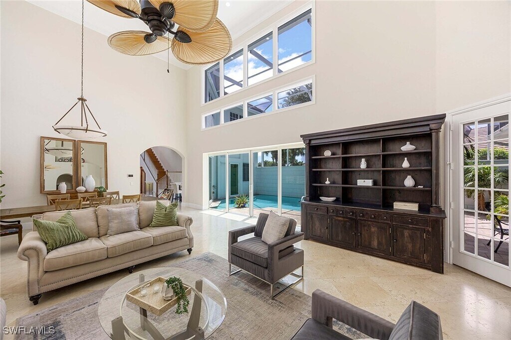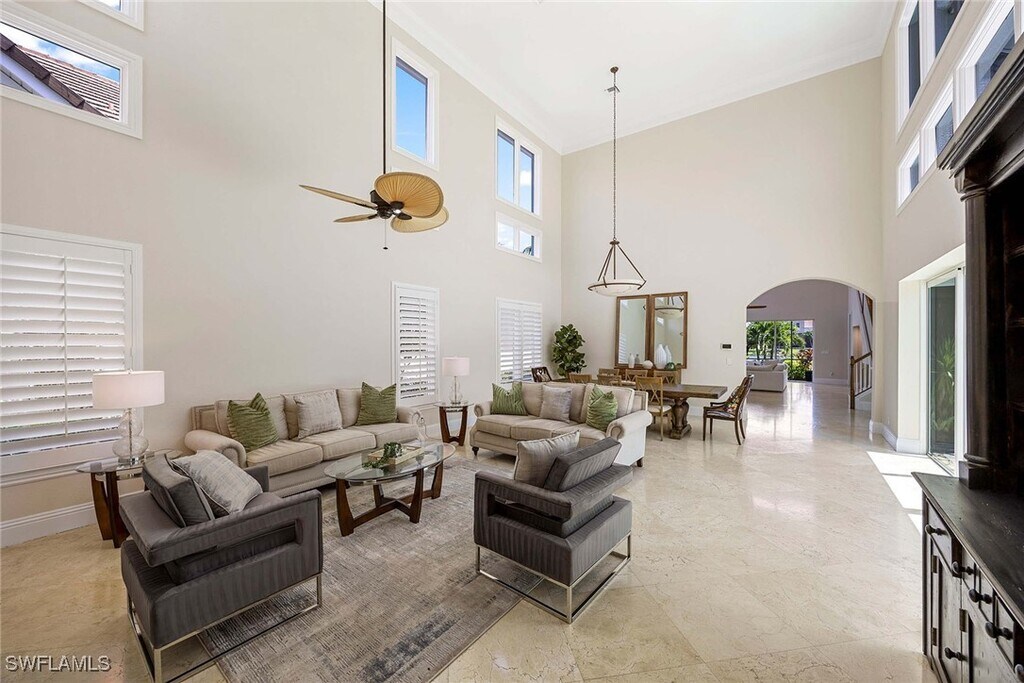 Discover Your Tropical Escape! Welcome to your dream vacation home,a true paradise offering everything you need for a perfect getaway. Step into the lush,inviting garden courtyard and feel the stress melt away as you enter your private tropical sanctuary. The stunning backyard boasts a sparkling pool and spa that enjoy southern exposure for sun-filled days. Relax in the charming private cabana,perfect for guests or as a cozy home office,and unwind on the scenic lanai with breathtaking water views. Inside,the bright and airy atmosphere is enhanced by double-height ceilings and large windows that fill the space with natural light. The luxurious primary suite is your personal retreat,featuring a tranquil sitting area,an enormous custom closet,dual vanities,a soaking tub,and a walk-in shower—just steps from your pristine poolside paradise. Designed for both entertaining and relaxation,the oversized second floor includes two spacious bedrooms,a full bath,and a versatile loft equipped with a pool table,ping pong,and a lounge area—ideal for family fun! The chef’s kitchen is spectacular,with a large island,stainless steel appliances,a pantry,a pot filler,and a custom bar that opens to the family room for seamless entertaining. When you rent this exquisite home,you can also choose to transfer the Fiddler’s Creek Club & Spa membership for a one-time fee of $750. Enjoy access to a 54,000-square-foot club featuring a multi-pool aquatics complex,sun decks with food service,a modern fitness center,a full-service spa,and courts for tennis and pickleball. Join exciting events such as birdwatching,spinning classes,wine tastings,and themed dinners,all conveniently located in the growing Southeast Naples area. You're only 10 minutes from Marco Island’s beautiful beaches and 20 minutes from the lively downtown Naples/5th Ave,with fine dining,art galleries,shopping,and more. Don’t miss this incredible opportunity to experience luxury and relaxation in the heart of paradise!