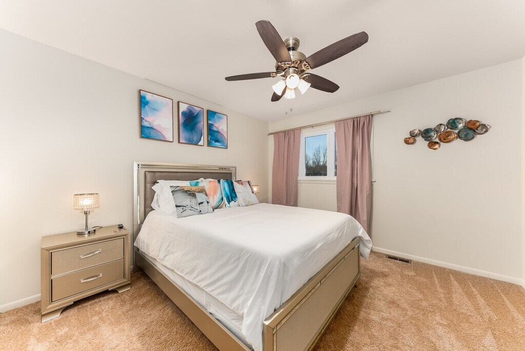 Feel at home in this updated 2300 sq ft home, the gem of the South suburbs, nestled in between Midway Airport and Tinley/Orland Park. This home features 3 bedrooms and 2.5 bathrooms. The updated home has updated flooring throughout, and a kitchen that won't disappoint, complete with plenty of kitchen utensils, pots, pans, and appliances. Comfortable seating is available throughout, and there is a table fitting 8 chairs for group dining. For entertainment, cards and game options are available. The home also features a fenced backyard, a 2-car garage, driveway and street parking, 5 LCD televisions with access to Hulu, Disney, and ESPN streaming services, Netflix and Prime Video access, Wi-Fi throughout the entire home, a sound bar in the living room, a pool table, and a foosball table. Children will enjoy the pack and play sleeper, stroller, high chair, and booster seat. Arcade games and a racing simulator are available for an additional deposit. If the home has a fireplace, it is not for guest use. [SI]