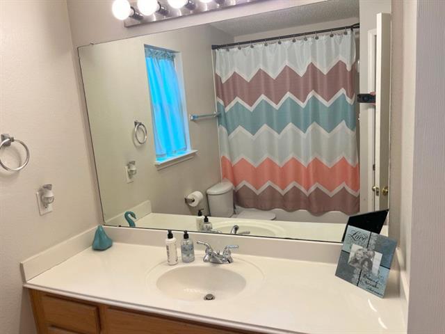 This well-maintained home in Summer Creek Ranch features three bedrooms, two and a half baths, and attractive amenities. As you enter the home, you will be greeted by a formal dining area with decorative lighting. Moving further in, you'll find the living area, which boasts a wood-burning fireplace, vaulted ceilings, and plenty of natural light. The downstairs area also includes a breakfast nook and an island kitchen with breakfast bar, tile backsplash, and ample storage space. Upstairs, there's a second living area that overlooks the downstairs. The primary suite offers dual sinks, a separate shower, and a jetted garden tub. Additionally, there are two more good-sized bedrooms upstairs, as well as a utility room. This home also offers the convenience of being located near the Chisholm Trail Parkway. This property is a must-see!