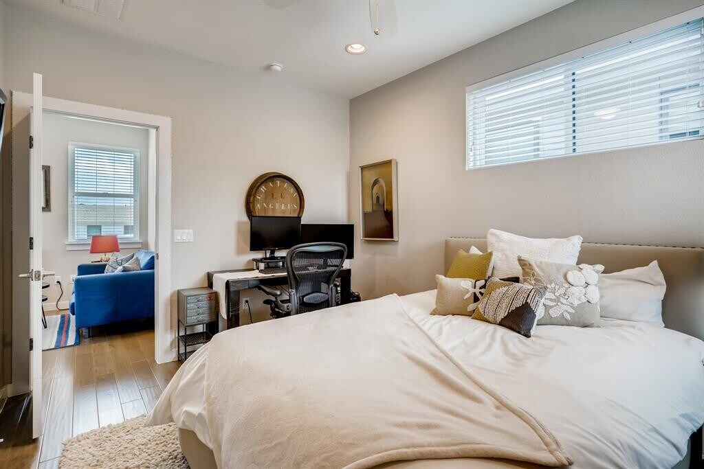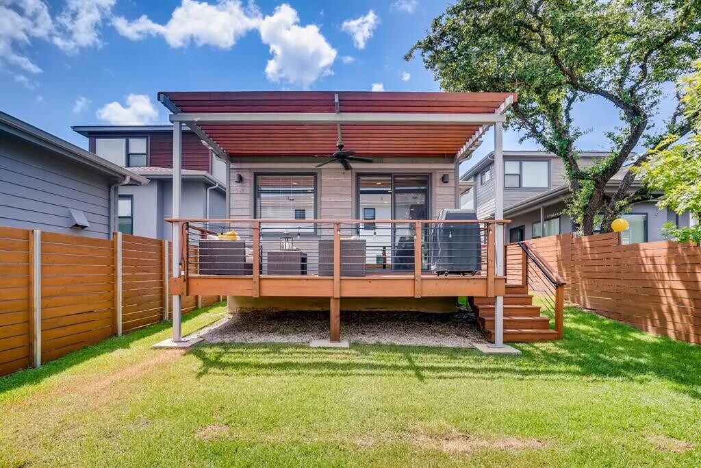 Modern design and luxury finishes blend beautifully in this exceptional Northwest Hills home. Enjoy easy living in this inviting and well-maintained residence, featuring a thoughtful floor plan, upscale lighting, gorgeous flooring, and high-end fixtures throughout. This fabulous home offers solar panels to lower your electric bills! The HOA also takes care of both the front and back yards, so you can enjoy a low-maintenance lifestyle. Relax in the spacious downstairs primary suite, which offers a sleek walk-in shower, dual vanity, and a generous closet, complete with easy access to the laundry room. The upstairs functions as its own suite, with a second bedroom, full bath, and a large versatile loft perfect for a home office, second living area, or a child’s bedroom! Downstairs, an open-concept design creates a seamless flow between the spacious living, kitchen, and dining areas. The stylish kitchen features quartz counters, a vent hood, and a generous island offering ample space for cooking and entertaining, along with convenient bar seating. A downstairs half bath offers added convenience for guests. The beautiful back deck with a pergola is ideal for relaxing, entertaining, grilling, and al fresco dining. The garage provides abundant storage with overhead racks and extensive built-in shelves. A fantastic location gives you convenient access to many shopping and dining options including The Domain, as well as Austin’s high-tech corridor with many major employers. This stunning property is also zoned to top-ranked schools Hill Elementary, Murchison Middle, and Anderson High, and it is walkable to Hill and Anderson!