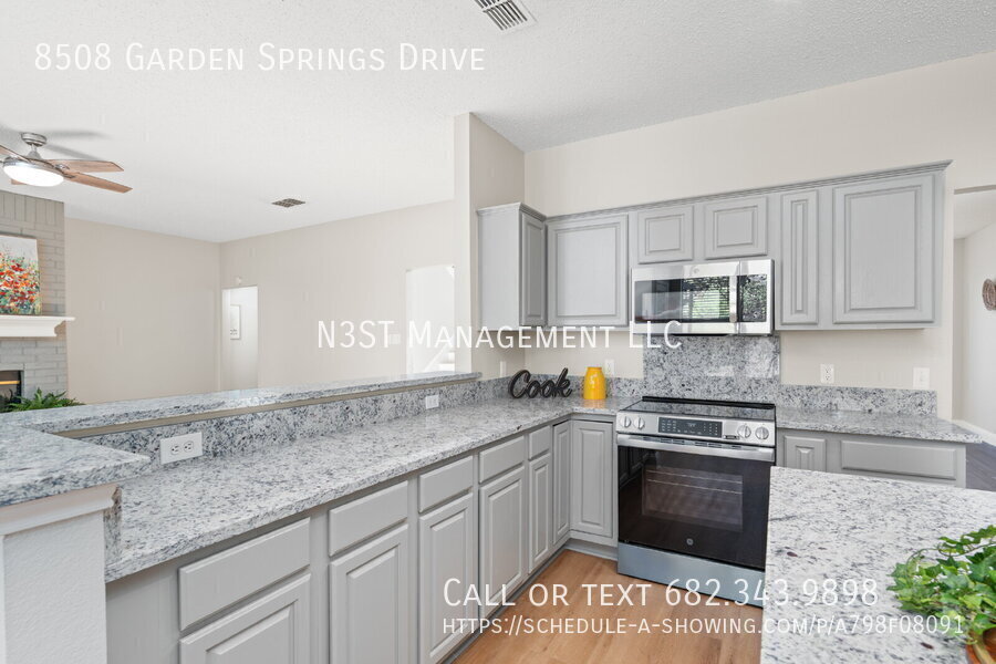Special Offer: $350 Off First Month’s Rent. Limited Time Only! Welcome to 8508 Garden Springs, a beautifully redesigned 5-bedroom, 3.5-bath home that perfectly blends comfort and style. The open-concept layout flows seamlessly between the living and dining ar eas, making it ideal for both entertaining and everyday living. The chef’s kitchen features granite countertops, a spacious island, new electric range and appliances, and plenty of cabinetry for storage. The first-floor primary suite offers a relaxing garden tub, dual sinks, and a separate shower. Upstairs includes four bedrooms, two full baths, and a spacious game room for family, hobbies, or guests. Enjoy modern finishes throughout and a large private backyard with a patio, perfect for dining or unwinding under the Texas sky. Come see this beautifully updated home — modern living at its best!Luxury Vinyl Plank Flooring Microwave Oven Private Large Back Yard