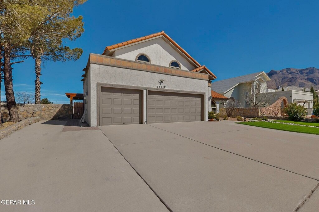 Welcome to this ~2,977 sq ft,two-story home in the desirable Highland Park subdivision,featuring refrigerated air,a 3-car garage,and low-maintenance synthetic turf in the front yard. Enjoy breathtaking views overlooking the Franklin Mountains,plus a backyard designed for relaxing and entertaining with a gazebo and scenic outlook. The kitchen is designed for both function and style,showcasing granite countertops,a full stainless-steel appliance package,ample cabinet storage,and generous counter space for meal prep and entertaining. The layout flows seamlessly into the main living areas,creating a cohesive environment for gatherings while maintaining defined spaces. The functional floor plan offers the primary suite downstairs,while a loft and two additional bedrooms upstairs provide separation of space. The primary bath features a corner soaking tub and separate shower. A large rear add-on provides flexible space for a home office,game room,hobby room,or fitness area. A rare combination of mountain views,functional layout,and versatile living space in one of West El Paso's most sought-after neighborhoods. Located in the heart of West El Paso,this home offers convenient access to West Towne Marketplace,local dining along Mesa Street,and outdoor recreation at Franklin Mountains State Park. Nearby Westside Community Park features walking trails,sports fields,and a popular dog park. Easy access to Mesa Street and Transmountain Drive provides smooth connectivity across the city. A rare combination of mountain views,functional layout,versatile living space,and prime West Side location.
