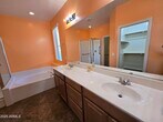 Freshly painted inteiror walls. Single level house in the desired Layton Lakes community in Chandler. Upgraded kitchen with granite counter tops,breakfast bar,stainless steel appliances including double-door refrigerator. Washer and dryer provided too. Ceiling fans in all rooms. High vanity in master bathroom,separate tub and shower,dual sinks. Large beige tile through in the great room. Mature but easy to maintain landscaping. Excellent Chandler schools. Convenient location,each access to shopping,dining and San Tan 202 highway. Move-in ready! No Admin fee on top of rent! Verifiable income above $7200/month. No felony history,No eviction history,One cat or small dog will be considered with $25/month pet rent. Fully refundable security deposit $2400 + cleaning deposit $500.