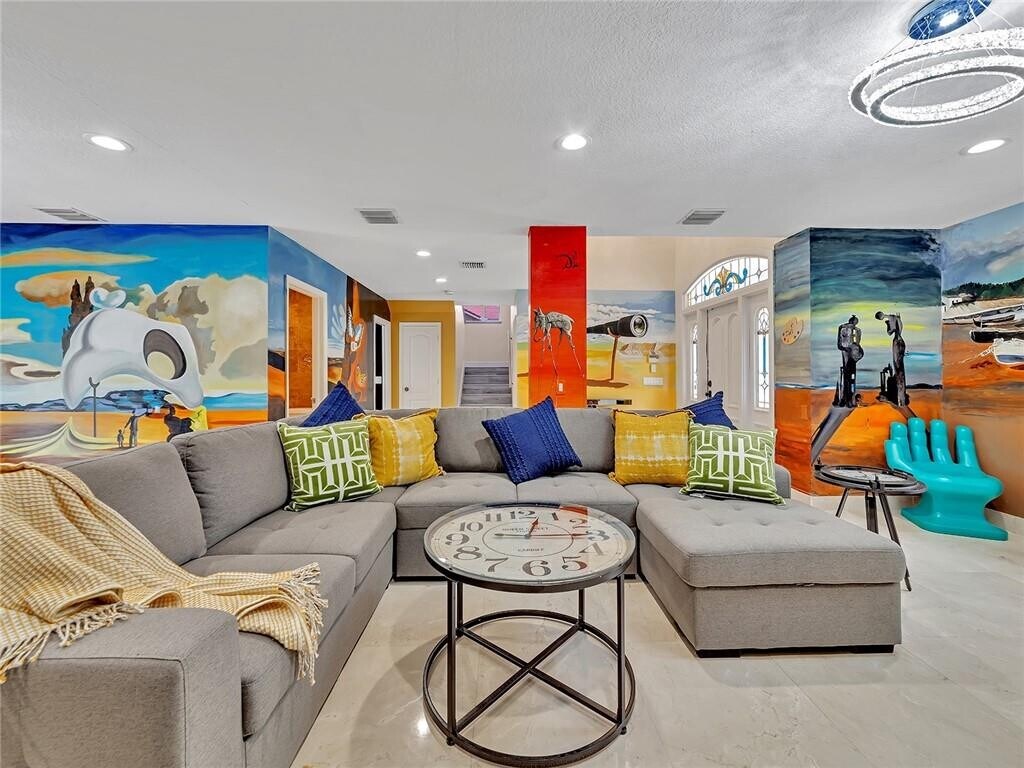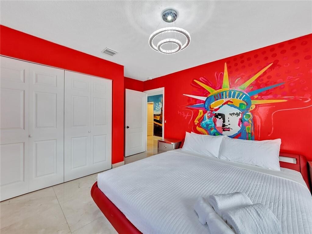 ArtHouse Hollywood Lakes 5BR / 3.5BA | Hot Tub | Game Room | Blocks to Beach Art-themed home in one of Hollywood’s most desirable neighborhoods — Hollywood Lakes. This is a full-house rental with a 3BR / 2.5BA main house + 2BR / 1BA guest house (total 5 bedrooms / 3.5 bathrooms). Not furnished. Features: Corner property Custom painted walls throughout Game room with bar, pool table + classic arcade-style games Putting green Hot tub Private ivy-covered courtyard + turf backyard with festive LED lighting Prime location: Blocks from the beach. Walking distance to public golf course, boat ramp, and park with observatory tower. Minutes to Downtown Hollywood + Ft. Lauderdale–Hollywood Airport. Section 8 welcome. Good credit preferred.