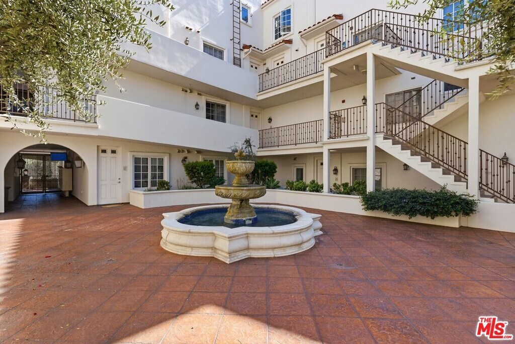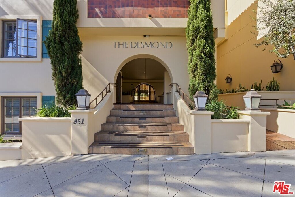 Welcome to one of West Hollywood's most coveted buildings, The Desmond, ideally located in the highly sought-after Norma Triangle. This Mediterranean architectural gem offers a tranquil, resort-like setting, featuring lush landscaping, mature trees, and multiple fountains that create a true oasis in the heart of the city. Privately situated on the top floor of the building, this townhouse-style condo offers both serenity and sophisticated living. Upon entry, you are welcomed by an open-concept layout filled with natural light, enhanced by the first of two private balconies. The kitchen is ideal for entertaining, featuring a built-in island, abundant cabinetry, and stainless steel appliances, all seamlessly flowing into the main living space. The thoughtfully designed floor plan includes one bedroom and one full bathroom on the main level, while the second level serves as a private primary retreat, complete with its own bedroom, oversized balcony, full bathroom, walk-in closet, and a spacious area perfect for a home office or lounge. This beautifully appointed residence combines privacy, elegance, and the best of West Hollywood living in one of the neighborhood's most desirable communities. MLS# 26661255