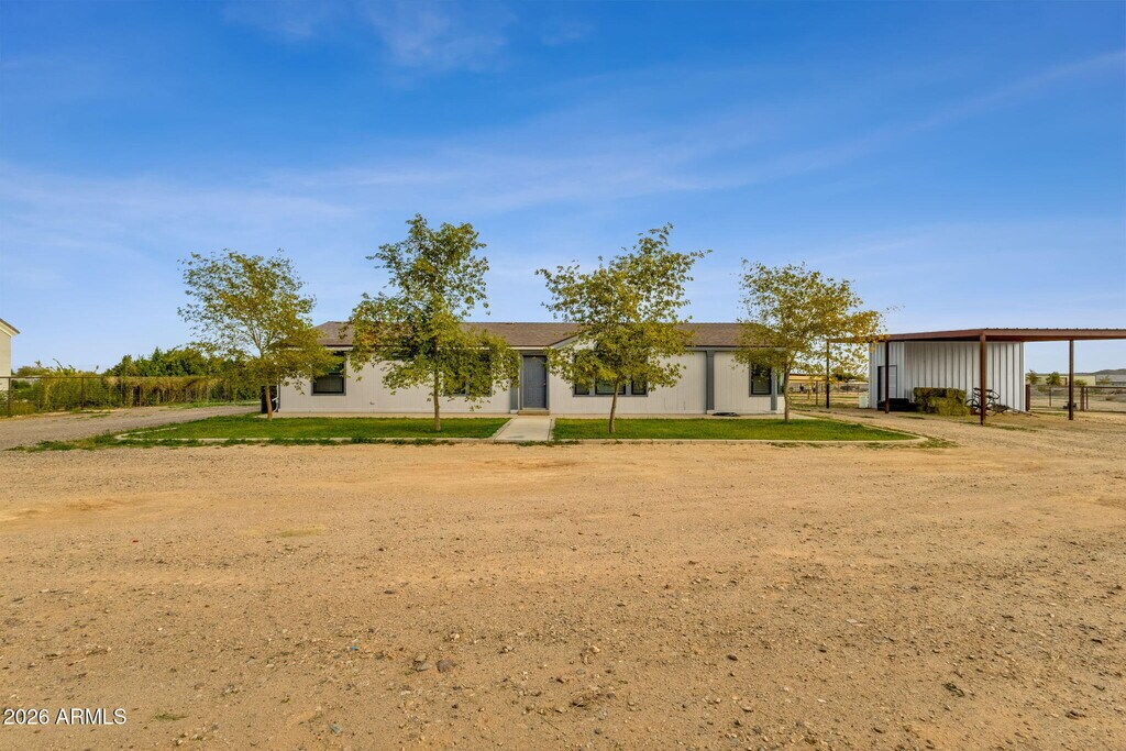 Spacious 4-bedroom,2-bath single-family home on a fully fenced 1.25-acre horse property with expansive mountain views and no HOA. Located at the end of a dead-end road,this quiet setting offers exceptional privacy and minimal traffic. The 2,177 sq ft home features abundant natural light,an east-west orientation,and beautiful desert and mountain views. The kitchen includes newer stainless steel appliances and a gas range,with washer and dryer included. Recent upgrades include a new roof and windows for improved efficiency. Property accommodates horses,RVs,boats,trailers,and other toys,with an RV gate,covered carport,storage shed,and ample open land. Pets welcome with approval. Tenant pays utilities. Near great schools and San Tan Mountain Regional Park. Minimum 12-month lease.