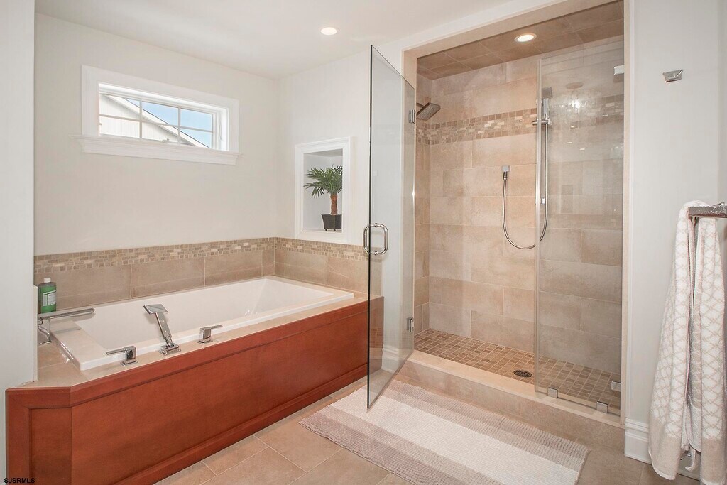Spectacular Custom Corner Home in the Desirable Margate Parkway Area Located at the corner of Mansfield and Fulton, directly across from the bay, this stunning 6-bedroom, 4-bath custom-built home offers the perfect blend of luxury, comfort, and shore living. A sensational wrap-around front porch sets the stage for gracious coastal living — the perfect place to enjoy your morning coffee, an afternoon breeze, or simply unwind at the end of the day. The main level features a spacious open floor plan designed for effortless entertaining. A beautiful living room with a fireplace flows seamlessly into a full-sized dining area and a gourmet kitchen that makes cooking a pleasure. Just off the kitchen, a deck with a barbecue provides additional space for outdoor dining and gatherings. Also on the first floor is a large bedroom suite with a stunning private bath — ideal for guests or convenient one-floor living. Gorgeous hardwood floors run throughout the first level, and the home is filled with natural light. The second floor boasts a spectacular primary suite complete with a sitting area, fireplace, oversized walk-in closet, and a private deck with bay views. Two additional spacious bedrooms and an upscale full bath complete this level. The laundry area is conveniently located on this floor. The third floor offers two more full-sized bedrooms and a beautifully appointed bath, providing ample space for family and guests. This meticulously maintained home shows like new. Situated on an oversized 60 x 80 lot, it features a fenced-in backyard, a shed for bikes and beach gear, and a long driveway off Mansfield with parking for three or more cars. Ideally located within easy walking distance to the JCC and its many amenities, including a gym, tennis courts, and basketball courts, this light-filled, beachy, and elegant home is the perfect setting for creating lasting family memories. MLS ID 604823