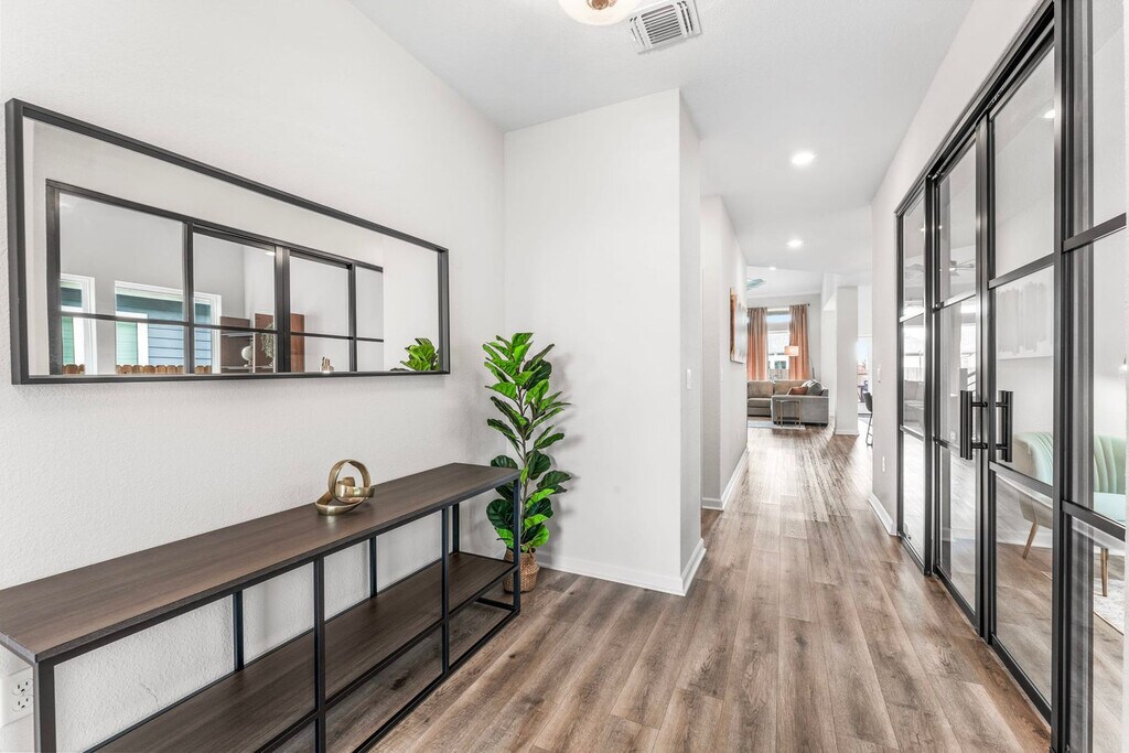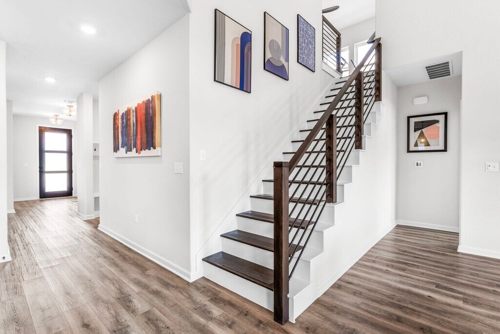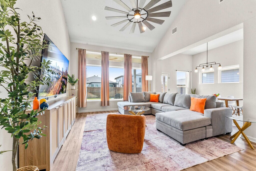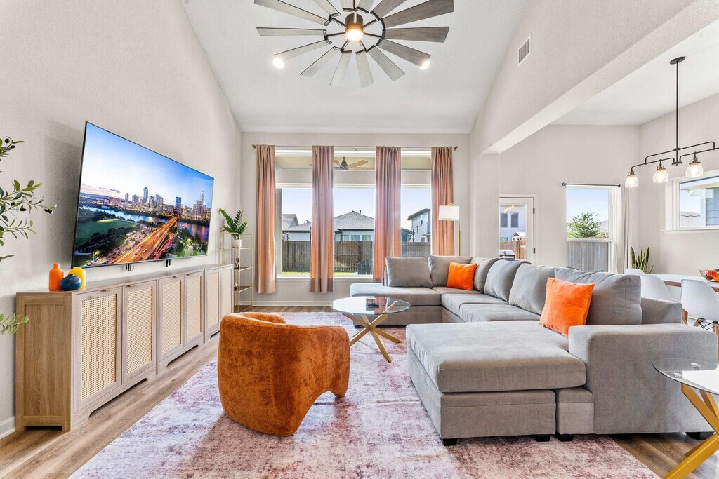 The advertised rate of $7,287/month is the lowest available price, based on a 30 day(s) stay with a move-in date of July 19, 2026. Rates vary depending on the duration of stay, season, and other parameters. For exact pricing and additional pricing components, please visit our website and enter your desired move-in and move-out dates. The rate is applicable when billed upfront; it can be higher if billed in multiple payments. Welcome to your new home in Easton Park, a 2,431 sqft house adjacent to McKinney Falls State Park. Feel at home minutes from CotA, downtown, and the airport. This is a 2-story home with stairs. This home comes with a fully stocked kitchen and ultra-fast Wi-Fi. It features a king-size bed in the master bedroom, a king-size bed in the second master bedroom, two full beds in one of the other bedrooms, and two full beds in the other bedroom with 12” memory foam mattresses, memory gel and gusseted pillows, down comforters, and ultra-soft linens. Relax on the oversized, super comfortable sectional and enjoy central air conditioning and heat, fresh towels and bathroom essentials, en-suite on-site laundry, complimentary coffee and tea with a Keurig machine and pour-over coffee, a fully equipped kitchen with pots and pans, bakeware, dinnerware, silverware, cookware, blender, toaster, and more. There is also a backyard patio. Pets are welcome with a fee of $25 per pet per night for stays of 1 to 4 nights, $200 per pet for stays of 5 to 29 nights, and $300 per pet per month for stays of 30 nights or more. Free on-site parking is available on the driveway and street curb. This vibrant locality offers a home-inspired design and redefined simplicity. The neighborhood is a serene suburb-like neighborhood located in Southeast Austin, right next to McKinney Falls State Park. It is located on a hill and can provide great hilltop-like views of Downtown Austin and the Texas Hill Country from the neighborhood park that's within a 2-minute walk. Miles and miles of walking and hiking trails weave through the neighborhood, and the community parks provide great entertainment for adults and children alike. CotA Race Track, Downtown (Rainey Street), Zilker Park / ACL, and the airport are all within a short drive. Community playgrounds, miles and miles of beautiful walking/running trails, and a food truck court with amazing food are only a short walk away. Smoking, parties, and excessive noise are not allowed, including on balconies and in shared spaces. Smoking violations are subject to a $1,000 fine, which includes the cost to clean, deodorize, and repair damages. Undisclosed pets will be charged at $200 per day. Noise detecting technology may be used inside the property in non-private spaces to monitor excessive noise levels, and tampering with these devices is strictly prohibited. Check-in is at 4 pm, and checkout is at 10 am. Guests who stay beyond their designated checkout time or delay our housekeeping staff are liable for any associated costs and expenses, up to $75 per hour after 10 am. Only 4 cars are allowed to be parked at the house at any given time. Includes a dedicated office space with two workstations, comfy desk chairs, and a reading nook. Ultra-fast Wi-Fi with the latest in router technology enables optimal productivity when working from home. There is also a Smart 85” smart TV in the living room with complimentary access to live cable (YouTubeTV), Disney+, Amazon Prime Video, HBO Max, Hulu, and ESPN+ and a Smart 55" TV in the master bedroom and 43" TVs in all bedrooms (guests' own account required for streaming apps for bedroom TVs). [SI]