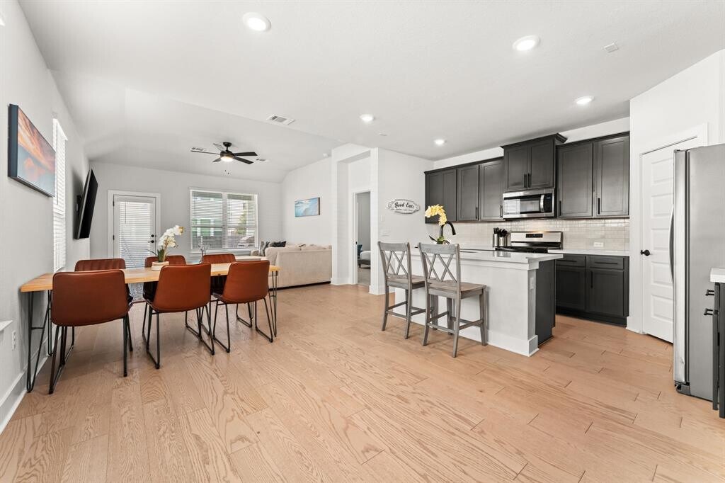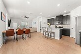 This like-new home in the desirable Addison community offers convenience, style, and a private in-ground pool just 10 minutes from Austin-Bergstrom International Airport and 20 minutes from Downtown Austin. Charming curb appeal welcomes you inside to a bright, open-concept layout with soaring ceilings, abundant natural light, and gorgeous wood-look tile flooring throughout the main living areas. The gourmet kitchen is a showstopper, featuring a center island with breakfast bar, quartz countertops, stainless steel appliances including a gas range, and a corner pantry for plenty of storage. The kitchen seamlessly flows into the dining area and spacious living room with ceiling fan, creating the perfect space for everyday living and entertaining. The main-floor primary suite is a private retreat, complete with a large walk-in closet and spa-like bath boasting a quartz dual vanity, soaking tub, and frameless glass walk-in shower. Upstairs you’ll find a versatile loft with office niche, three additional bedrooms, and two full guest bathrooms. Step outside to your very own backyard oasis, featuring a sparkling pool, a covered patio, and a fenced yard—perfect for relaxing, entertaining, or staying cool on warm Texas days. Addison residents enjoy exceptional community amenities including two resort-style swimming pools, a fitness center, park, playground, and more. Schedule a showing today!