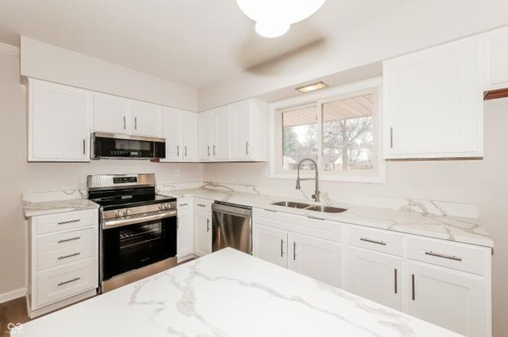 Beautifully Updated 3 Bedroom, 2 Bath Ranch – Move-In Ready! This charming ranch home has been thoughtfully refreshed from top to bottom and is ready for its next residents! Inside, you’ll find brand-new luxury vinyl plank flooring and carpet, along with fresh interior and exterior paint that gives the entire home a bright, modern feel. The kitchen has been stylishly updated with refreshed cabinetry, new quartz countertops, and new stainless steel appliances including a range, microwave, and dishwasher — perfect for everyday living and entertaining. Both bathrooms have also been updated for a clean, contemporary look. Enjoy the open floor plan, ideal for comfortable living, plus a cozy brick fireplace that adds warmth and character. French doors lead to the backyard and patio, creating a great space to relax or gather with friends and family. Additional updates include a new water heater and modern light fixtures throughout, giving you peace of mind and energy-efficient comfort. Located in Yorktown School District, close to I-69 and all amenities. Quiet neighborhood near the Elks golf course. ? Modern updates, classic charm, and truly move-in ready — this one won’t last long!