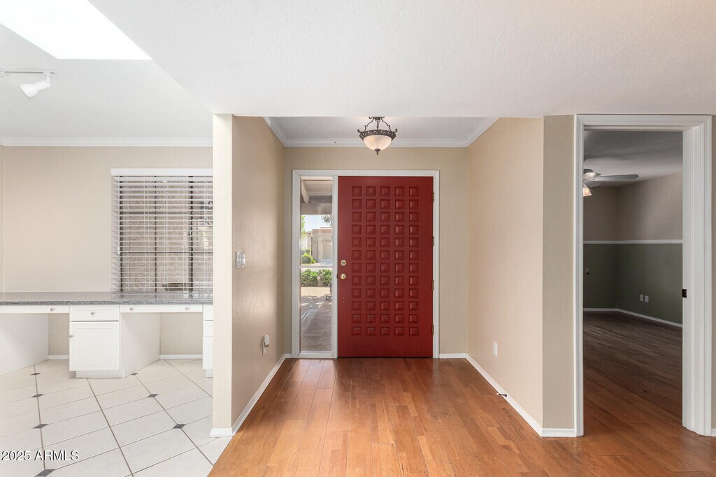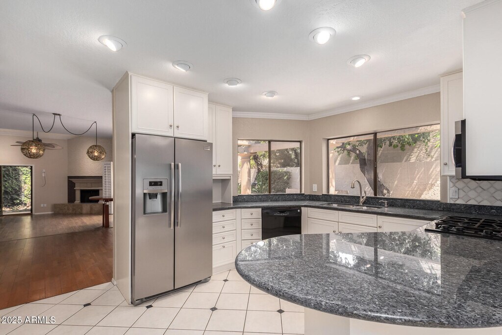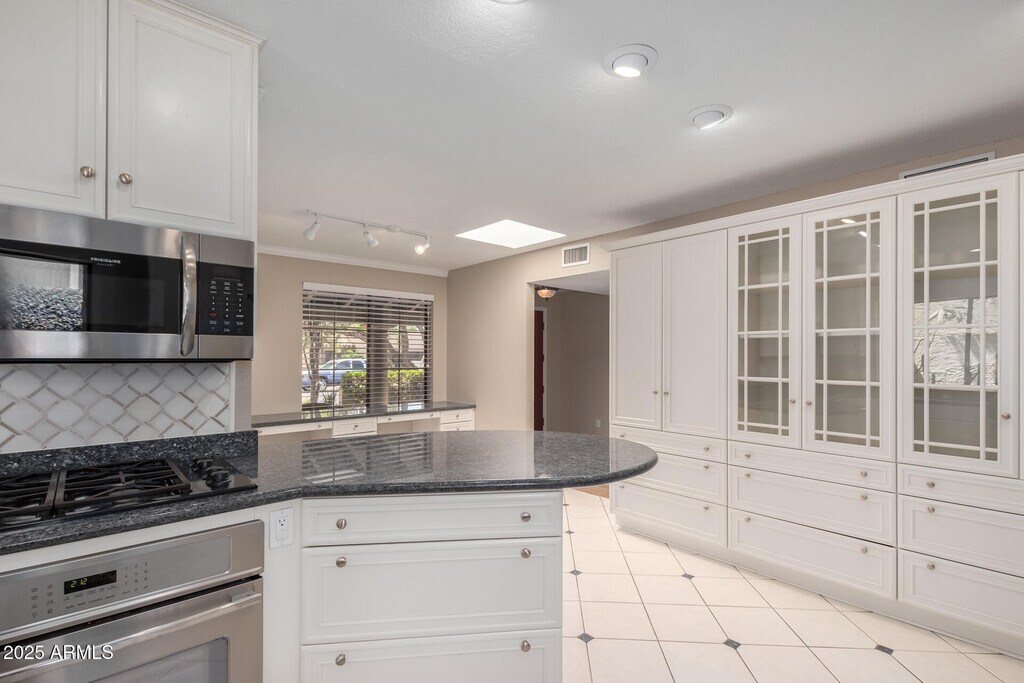 Exceptional townhome in the guard-gated Las Palomas is move-in ready! Offering a well-manicured landscape & a 2-car garage w/cabinetry. Discover a perfectly flowing living & dining room w/fireplace & sliding doors to the back! Vaulted ceilings add to the airy feel,complemented by a designer palette & wood floors in all the right places. The spacious kitchen boasts built-in appliances w/ gas cooktop,ample white cabinetry,granite counters,stylish tile backsplash,built-in desks,and a breakfast bar. Large main bedroom has backyard access and an ensuite with dual sinks,separate tub/shower,& a walk-in closet. You'll love the tranquil backyard retreat w/covered patio,ample space for entertaining,and built-in BBQ! Enjoy Community amenities like pools,tennis/pickleball courts & more!
