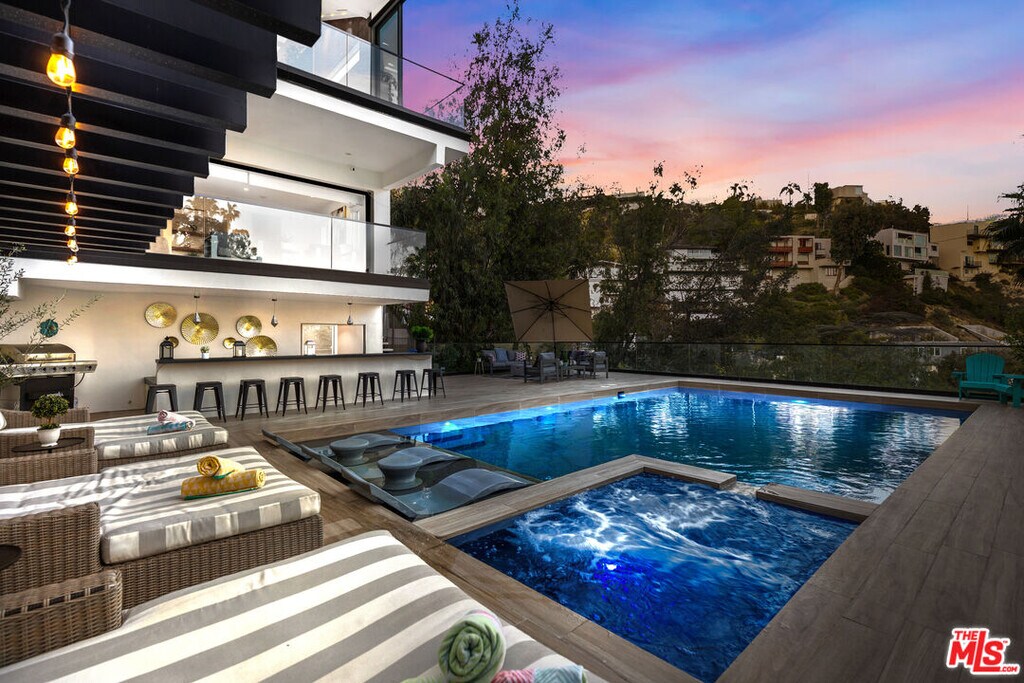 This property is available for short-term and long-term rentals, each with its respective pricing options. It is fully furnished, decorated, and equipped with hotel-like essentials and amenities. With our concierge team available to assist 24/7, this home rental offers a five-star hospitality experience, whether you are staying for a few days, a month, or a year .Located right next to the Sunset Strip, this modern three-story estate boasts four luxurious bedrooms and five beautifully appointed en-suite bathrooms. Ideal for hosting and entertaining, this property offers a full gourmet kitchen, billiards table, private theater and gym, and hardwood throughout. Outside you can find breathtaking city views from the backyard dining terrace, pool & spa, plus an incredible single car garage and driveway with ample street parking. MLS# 25608463