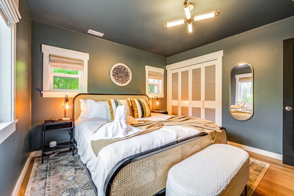 Discover this charming Craftsman cottage near the Ballard Historic District. Centrally located and highly accessible, this immaculately cozy 1-bedroom, 1-bath single-level home spans approximately 650 sqft, offering a peaceful and private retreat. Enjoy Seattle summers in this beautifully updated home, featuring modern amenities and tasteful decor that make staying in feel exceptionally cozy. The gorgeous outdoor deck and large yard are perfect for relaxation and entertaining. The kitchen is stocked with high-end appliances, cookware, silverware, servingware, spices, coffee, and tea. A comfortable and easy-to-use pull-out queen-size sofa bed adds extra convenience to your stay, and an onsite washer and dryer cater to your laundry needs. Ample parking is available in the driveway and around the house. Well-trained pets are welcome with a fee of $50 per pet per night. Additional guest fees are $25 per person per night, up to a maximum of 4 guests. Located just a few blocks from Golden Gardens and Sunset Hill Park, and within walking distance to coffee shops, restaurants, and more, you'll have everything you need nearby. Easy access to Downtown Ballard by bike or car makes city exploration convenient. This home is in Ballard, a hip and trendy neighborhood northwest of downtown Seattle, with many bars, ice cream shops, tea and coffee parlors, and access to a lovely beach park at Golden Gardens. Ballard Ave is the key retail street, and if you stay here on Sundays, don't forget to check out the farmers market on Ballard Ave! This property has two separate houses (Front House and Back House) on the property, and this listing is for the Front House. Each rental has its own private entrance and does not share amenities, ensuring privacy. The yard is a shared space with other residents, so please respect the privacy and quiet enjoyment of the back house guests. Strictly no parties and events, quiet hours between 10pm-8am, no smoking or vaping of any kind anywhere on the property, and no shoes in the home. A $500 fine applies per violation. Registration Number: STR-OPLI-24-000659 [SI]