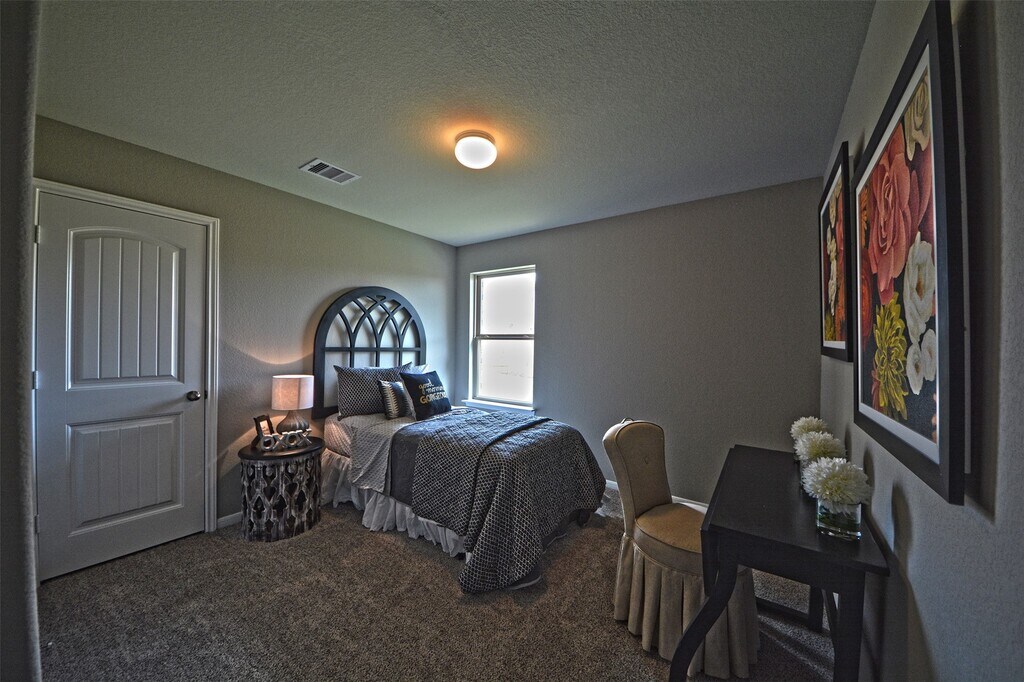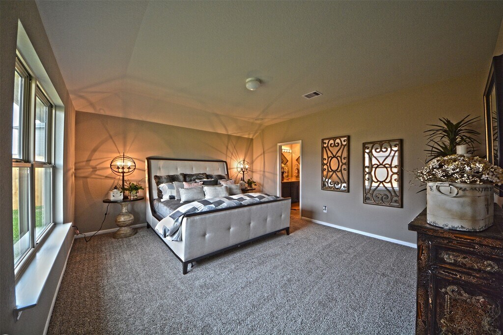 Fall in love with this home in the charming community of Southern Colony. This home features a gourmet kitchen w/ stainless steel appliances (incl. refrigerator),42" cabinets,tiled back splash,granite counter tops,walk-in pantry,breakfast bar/island and an open concept plan with living & dining areas. The master suite is tucked away from other bedrooms & features an en-suite with double vanities,walk-in shower & large walk-in closet. The bedrooms are carpeted & the wet areas have ceramic tile flooring. This home also includes: 2" blinds,key-less entry,sprinkler system,tank-less water heater,washer/dryer,pre-wired for security system,double pane windows,covered back patio & fans in living room and all bedrooms. Community amenities include: Playgrounds,basketball court,picnic pavilion,soccer field,splash pad & walking trails. Location is quick drive to Pearland Town Center & easy access to HWY 288/HWY 6/ Ft Bend Toll Road. Pictures from model home! MLS# 36151235