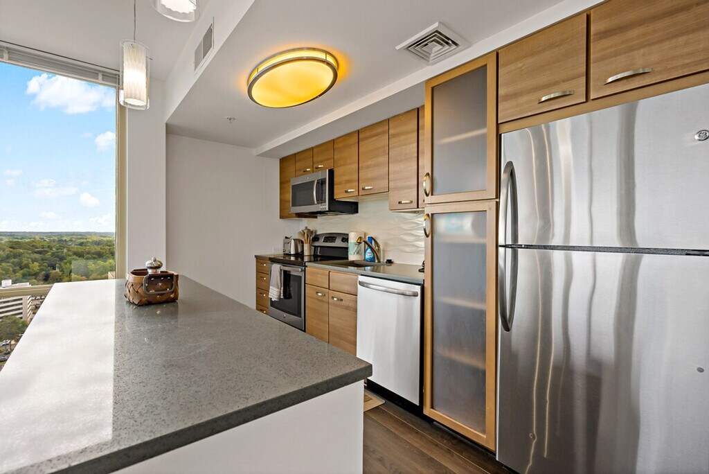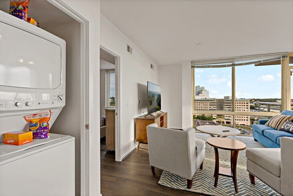 Experience refined luxury and comfort in this 2-bedroom apartment located in one of the Washington metro area’s most vibrant neighborhoods. Feel at home in this cozy space. This apartment features two cozy bedrooms with fresh linens and plenty of storage, as well as two full baths with showers and clean towels. The fully equipped kitchen has modern appliances and essentials for home cooking. Relax in the comfortable living room with great views and a relaxing vibe. Paid garage parking is available with an advance request for an extra fee, and public parking is available nearby. Pets are welcome for an additional fee; please ask for details. All guests must upload a valid government-issued ID or passport to confirm their booking. Failure to provide a valid ID may result in reservation cancellation without refund. [SI]