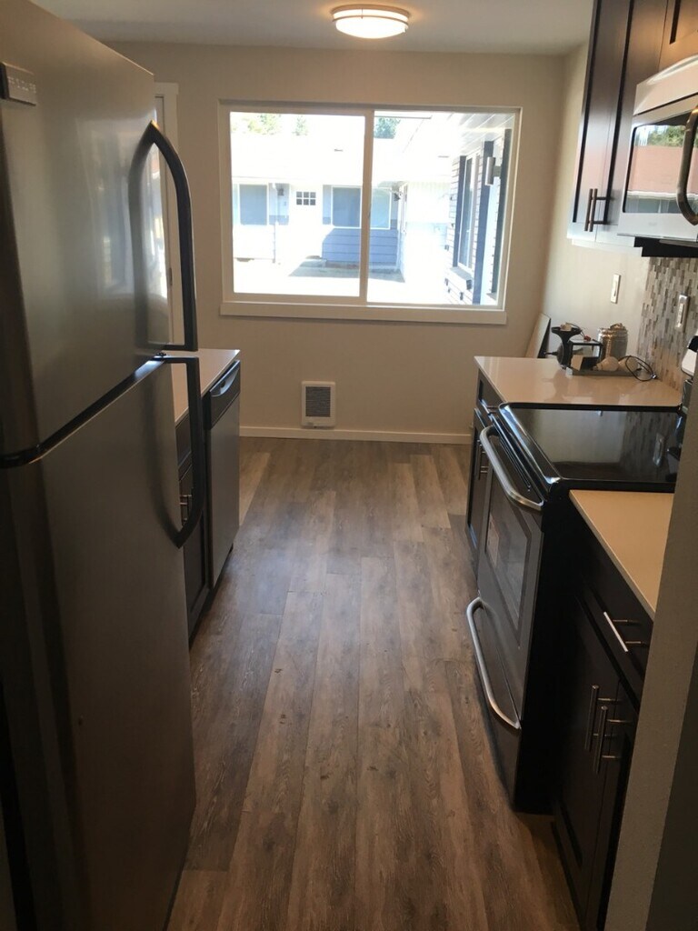 Located in a quiet 4-plex in the Central Lakes neighborhood, 8516 Washington Blvd SW #2 is a ground-floor apartment offering a spacious 2-bedroom, 1-bathroom layout with approximately 1,025 square feet of livable area. Interior Highlights Modern Finishes: The unit features an abundance of natural light, gleaming hardwood-style flooring, and high-end contemporary finishes throughout. Upgraded Kitchen: Designed for functional cooking, the kitchen includes ample cabinet space, a large island, and a full suite of appliances: refrigerator, range, microwave, and dishwasher. In-Unit Laundry: For maximum convenience, a dedicated washer and dryer are included within the unit. Climate Control: Heated efficiently with cadet heaters. Exterior & Building Features Outdoor Space: Residents enjoy a private fenced yard or patio area. Parking: Includes dedicated off-street parking with additional guest parking typically available on-site. Classic Structure: Housed in a well-maintained 1956 brick-and-wood 4-plex. Prime Lakewood Location Central Convenience: Situated just a short drive from major shopping, dining, and entertainment hubs. Military & Healthcare Proximity: Ideally located for easy commutes to JBLM, Lakewood Towne Center, and St. Clare Hospital. Recreation: Nestled in the park-like Central Lakes area, close to Lake Steilacoom, Lake Louise, and Waughop Lake for hiking and water activities. Lease Terms 12 Month Lease Monthly Rent 1650 Security Deposit 1000 + move in fee 650 WSG Utilities 150 per month Qualifications 3X Income required based on monthly Rent 680 Fico Required (lower ficos can be considered if compensating factors exist) Move in requires 2 months rent (for first months rent and security deposit + move in fee) Verifiable Income through paystubs and employer Verbal verification Rental History - no more than 3 lates in the last 12 months from curent landlord or housing Security deposit is 1000 refundable Admin Fee is 650 no refundable Pets Allowed 35 per month 450 non refundable fee (certain breeds restricted due to risk to other residents)