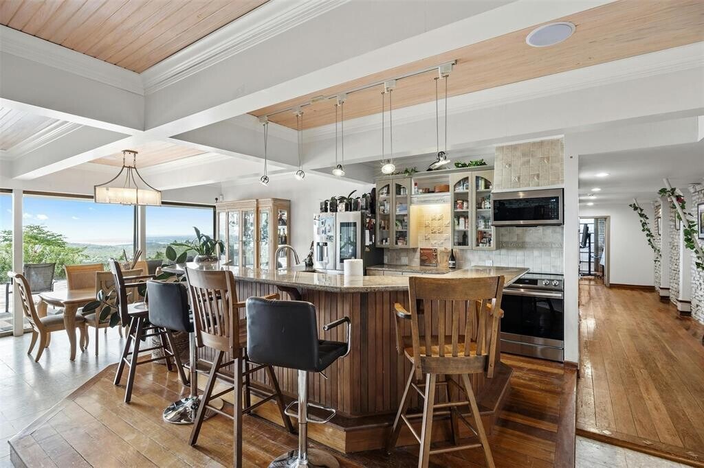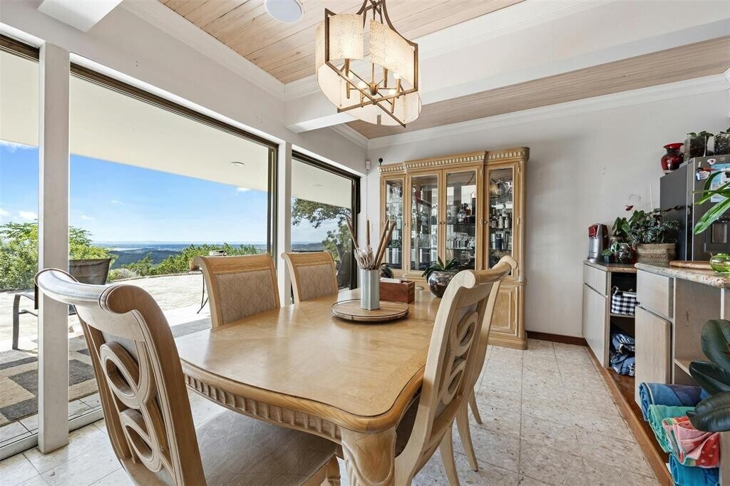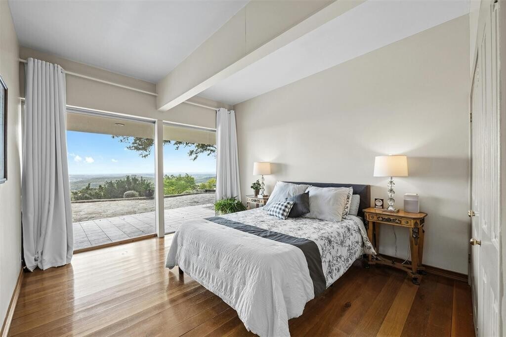 Experience the ultimate in contemporary living with this stunning custom-built home, designed to harmonize with the beautiful views of Lake Travis and the Texas Hill Country. Enjoy coffered ceilings, wood and natural stone flooring, and an open floor plan that flows seamlessly from room to room. The gourmet kitchen features elegant granite countertops and striking stone walls, while the inviting living area boasts a cozy fireplace and floor-to-ceiling glass doors that frame panoramic views. With sliding glass doors along the back, you can effortlessly blend indoor and outdoor spaces, perfect for enjoying the lush surroundings and refreshing breezes. Each bedroom offers picturesque lake views, with an exceptionally spacious master suite for your personal retreat. Outdoor living is a dream here, with a shaded courtyard entrance, a rock patio, a firepit, a hot tub and an outdoor dining area complete with a rock pizza oven. Surrounded by vibrant fruit and oak trees, this home is just minutes from 1431 and the Lucky Rabbit, and only 15 minutes to Cedar Park and 45 minutes to downtown Austin. Don't miss this incredible opportunity to live in a piece of paradise!