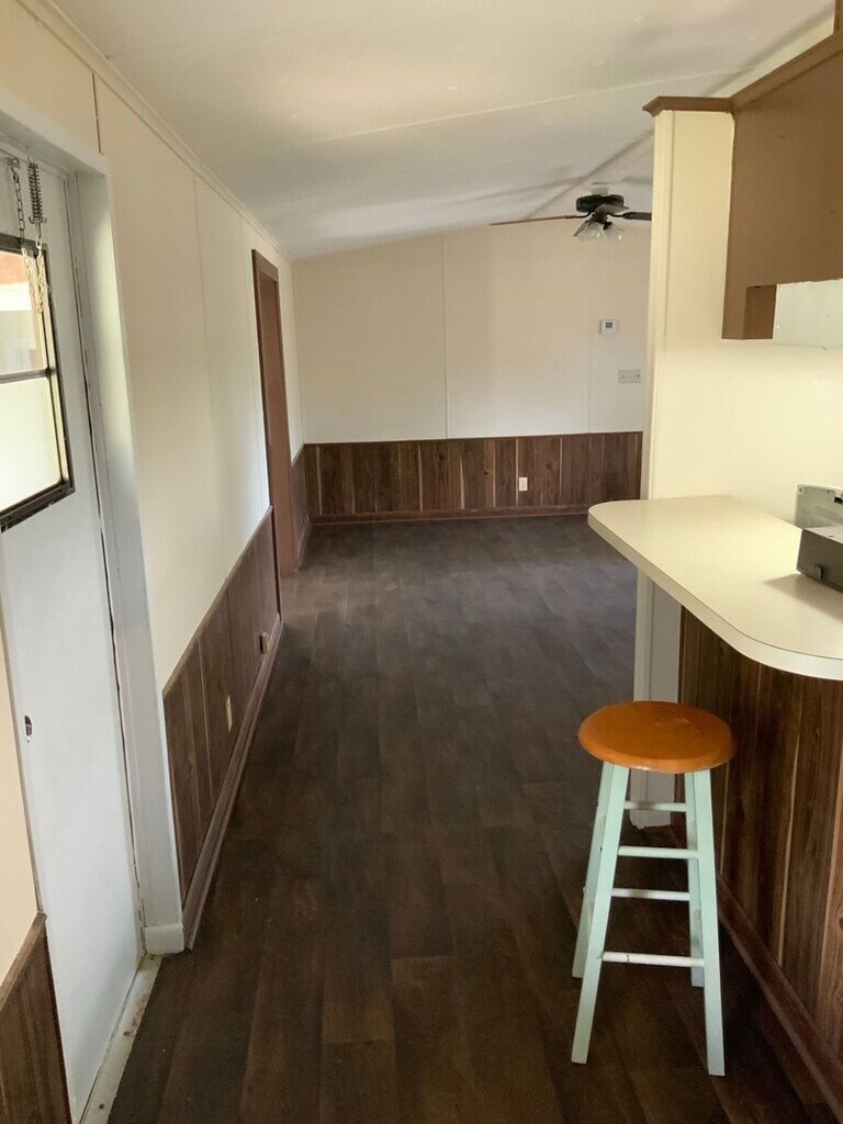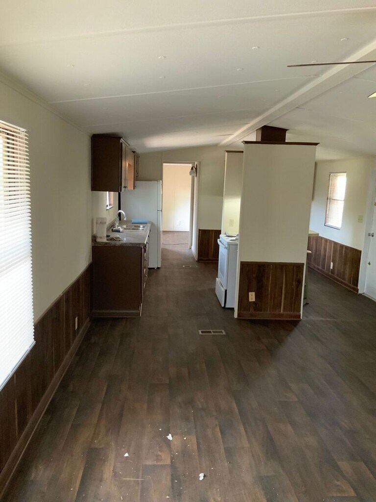 Single-wide manufactured home with a built-on addition that could be used as a bedroom or a den. Front and back porches on a quiet lot. Central a/h. Ready to move-in. Appliances included: Range, refrigerator Utilities included: None