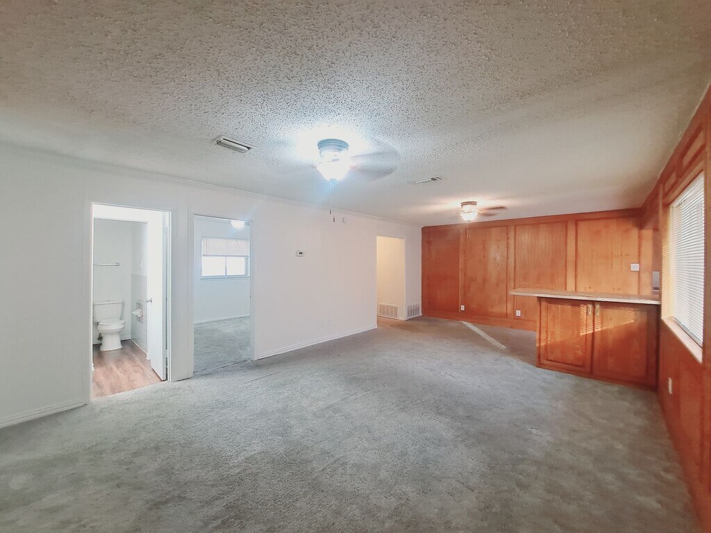 Affordable 3/2/1 Available Now! Front entry opens to huge wood paneled living area. Open eat in kitchen with full-sized dining area, tons of countertop space and appliances included: Stove, Dishwasher and Refrigerator! Breakfast bar, pantry, tons of storage space, central heat and air, ceiling fans and so much more! Large bedrooms with plush carpet, fresh interior paint and move in ready. Huge backyard, garage with full-size washer and dryer connections. This one is priced to move and won't last long. Call to schedule your personal tour today. This property is eligible for deposit alternative coverage in lieu of a security deposit. To save money on your move in and to check for eligibility coverage click Apply Online! No Smoking. Pet Friendly. No Section 8. Refrigerator is a non-warrantied item. BAC 30%. Apply online at