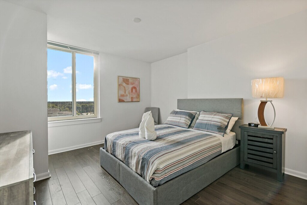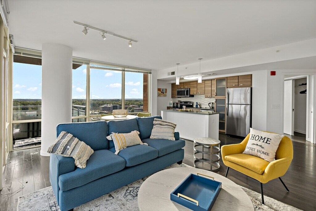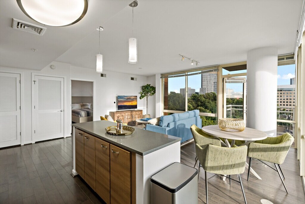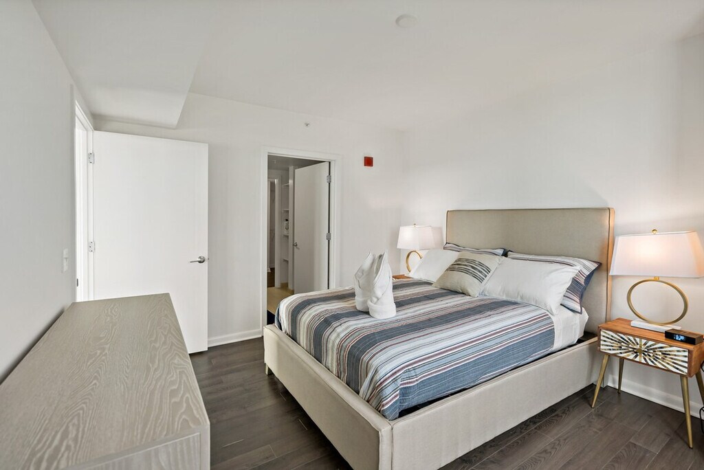 Experience upscale living in one of the Washington metro area's most dynamic neighborhoods and feel at home in this apartment. This property features two well-appointed bedrooms and two full bathrooms. This apartment is fully equipped with a modern kitchen, cookware, and utensils, making it easy to prepare home-cooked meals. The living room is a warm and inviting space with stunning views and comfortable seating, perfect for unwinding after a long day. Building amenities include a gym, an outdoor pool, outdoor dining areas, a workspace and lounge, and a mail room. Paid garage parking is available upon request, subject to availability and must be arranged in advance. Pets are allowed for an additional fee; please inquire for details. Self-service public parking is conveniently located across the street. All occupants must provide a valid government-issued ID to confirm the reservation. [SI]