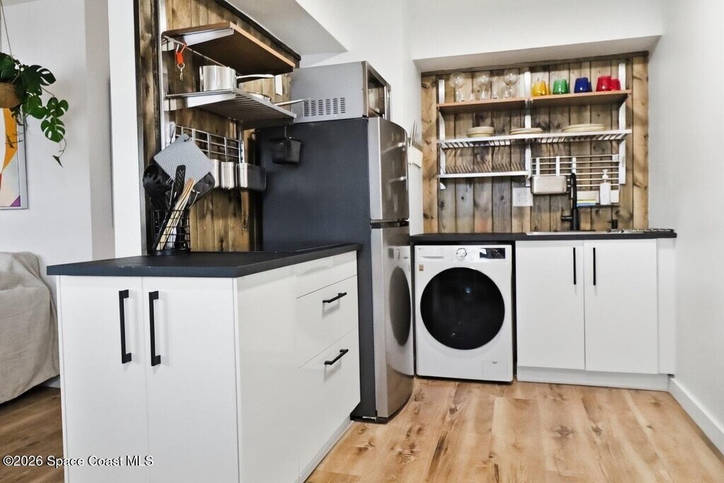 Experience coastal living at its finest in this fully renovated 1-bedroom condo,beautifully furnished and equipped with the latest modern amenities. Move right inshort-term lease options are available,and all you need to bring is your suitcase,as every detail for comfort and convenience is provided. Close to the beach,you'll enjoy sun,sand,and frequent rocket launches. The modern kitchen features brand-new appliances,a full kitchen setup,and a dining table. Bright and light,enjoy a spacious living room,comfortable queen bed,generous storage,and en suite bathroom. Includes a heated pool,assigned parking,guest parking,and a bike rack. Whether you are a professional,vacationer,or remote worker,this home is ideally situated near NASA,Blue Origin,and SpaceX. Immaculately maintained and move-in ready,this property offers the ultimate in easy,enjoyable coastal living! Lease terms are flexible schedule a private showing today. MLS # 1066509