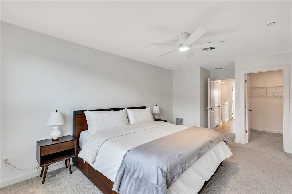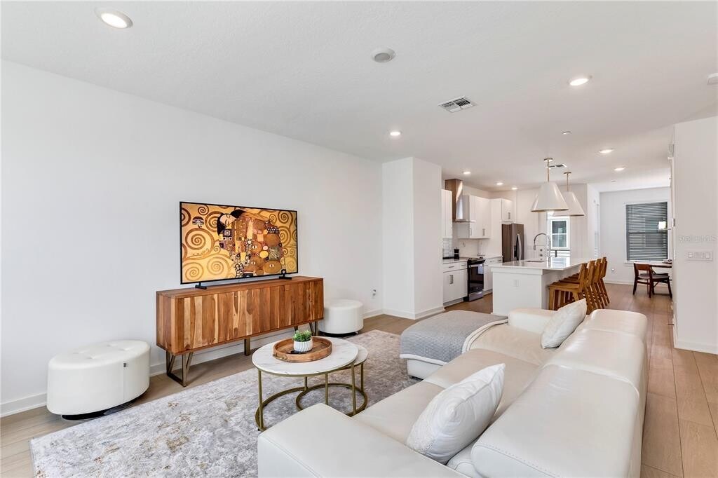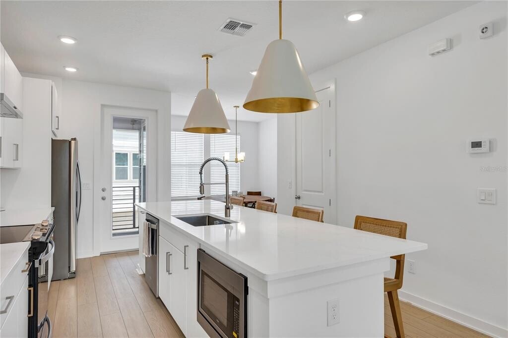 Discover the charm of this elegant 3-bedroom townhome nestled in Laureate Park at Lake Nona community. Spanning three stories,this townhome offers picturesque water views and a blend of modern comforts. On the ground floor,find a spacious bedroom,a full bath,and a convenient 2-car garage. The second floor boasts a well-designed great room layout,with the living room seamlessly connected to the modern kitchen. From here,step out onto a private balcony that overlooks the serene surroundings. The kitchen showcases 42' cabinets,sleek quartz countertops,and a suite of stainless steel appliances. Throughout the living areas,enjoy the timeless appeal of Luxury Vinyl Plank flooring. Ascending to the third level,you'll discover a lavish master suite accompanied by an indulgent master bath. An additional bedroom and bath provide ample space for guests or family members. Indulge in the community's luxurious amenities,including access to the state-of-the-art Aquatic Center featuring two inviting swimming pools and a sand volleyball court. This prime location also places you within the sought-after A-rated school district,ensuring excellent education opportunities for your family. Convenience is at your doorstep with easy access to everything: shopping,dining,outdoor activities,major highways to take you to the beautiful coast and beaches! Schedule a viewing today! MLS# O6334458