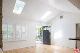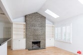 Tucked away on a peaceful and scenic Hollywood Hills Canyon Road, this stunning traditional-style home radiates charm and character. Featuring an open floor plan with vaulted ceilings, a modern kitchen with a breakfast bar, a cozy dining area, a fireplace, hardwood floors, and French doors that lead to a tranquil rear garden with terraced hillside views. The inviting home offers 3 bedrooms, 2 full bathrooms, a den (potential 4th bedroom), and a laundry room. The spacious master suite with soaring ceilings, complete with a luxurious bath with a jetted tub and a private office/flex space, occupies the second floor and opens to a generous wrap-around patio ideal for relaxing in the serene canyon surroundings. Additional highlights include an EV charger, Nest Thermostats, Ring doorbell, new washer/dryer, Culligan saltwater softener, retractable awning off the master, skylights, tankless water heater, storage room, and three private parking spaces - one oversized. Freshly painted, remodeled and located within the Wonderland Avenue Elementary School district, this home is a true oasis! 13-month Term minimum - no exceptions MLS# 25585205