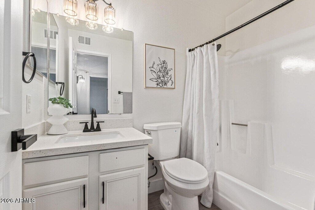 Beautifully updated low-maintenance townhouse in Scottsdale. This 2 bedrooms and 1.5 bathroom home is move-in ready home offers a modern interior with two-tone designer paint,tile flooring throughout,and upgraded plumbing and electrical fixtures. The kitchen is equipped with new quartz countertops,whit cabinetry and brand new stainless steel appliances,perfect for everyday living and entertaining. Cute little private patio with turf and pavers. Great South Scottsdale location close to everything. Attached 1-car garage.