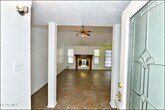 Experience the perfect blend of comfort & style in this stunning property ready to welcome you home today. Interior highlights include an expansive central living room enhanced by tall vaulted ceilings,a striking architectural fireplace,& premium ceramic tile flooring for a clean and modern aesthetic. The kitchen features a highly practical layout equipped w/ a breakfast peninsula,abundant wood cabinet storage,a gas cooktop,& a reliable refrigerator to handle all your culinary needs. Excellent floorplan advantages provide a clear distinction between the lively entertainment spaces & the tranquil,carpeted bedrooms designed for ultimate restful comfort. Outdoor features boast a wonderful covered patio space overlooking a meticulously maintained rock landscaped yard,perfect for enjoying the outdoors w/o the hassle of heavy yard work. Location advantages offer a highly desirable setting close to popular retail centers,local dining favorites,and accessible highways. Deposit option through Obligo