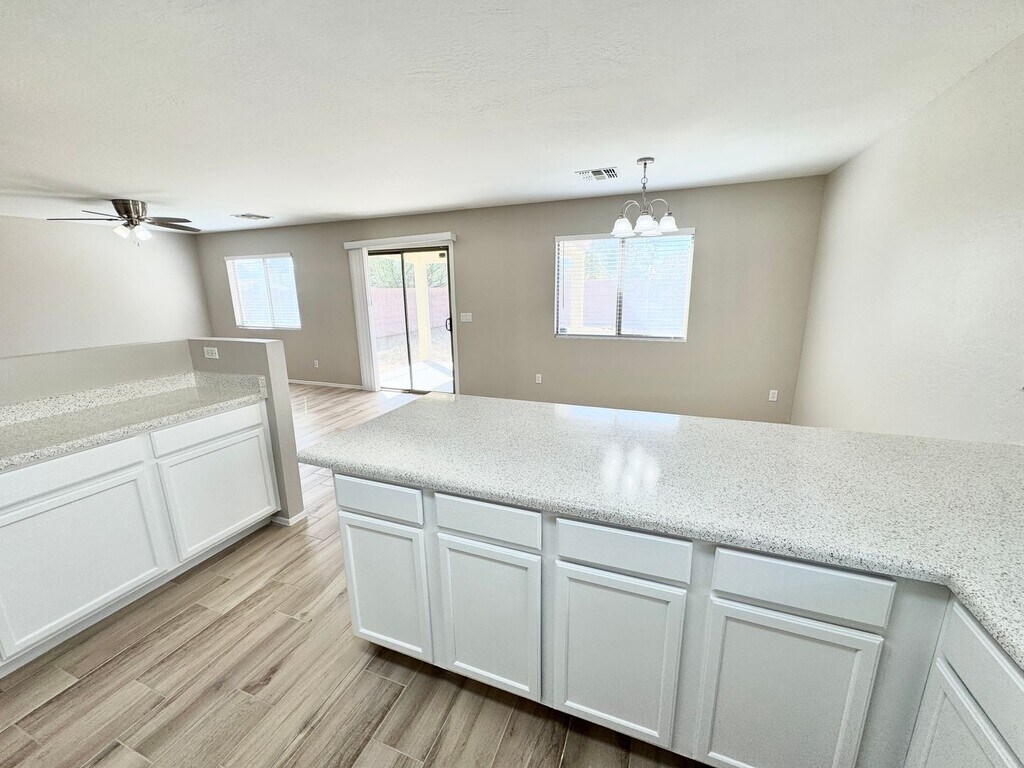 Welcome to this stunning home located in the heart of Tolleson, AZ. With five spacious bedrooms and 3 bathrooms, this recently remodeled home offers ample space for comfort and relaxation. The first floor features a full bedroom and bathroom, perfect for guests or a home office. The brand new wood look tile plank flooring downstairs adds a touch of elegance and durability. The kitchen, boasting white cabinets, is a chef's dream. Upstairs, you'll find a large loft area, perfect for a game room or additional living space. The brand new carpet upstairs adds a cozy touch to the bedrooms. The home also features new interior painting and new white blinds, adding a fresh and modern feel. Outside, enjoy the low maintenance landscaping, perfect for those who prefer a hassle-free yard. This home is a perfect blend of style, comfort, and convenience.