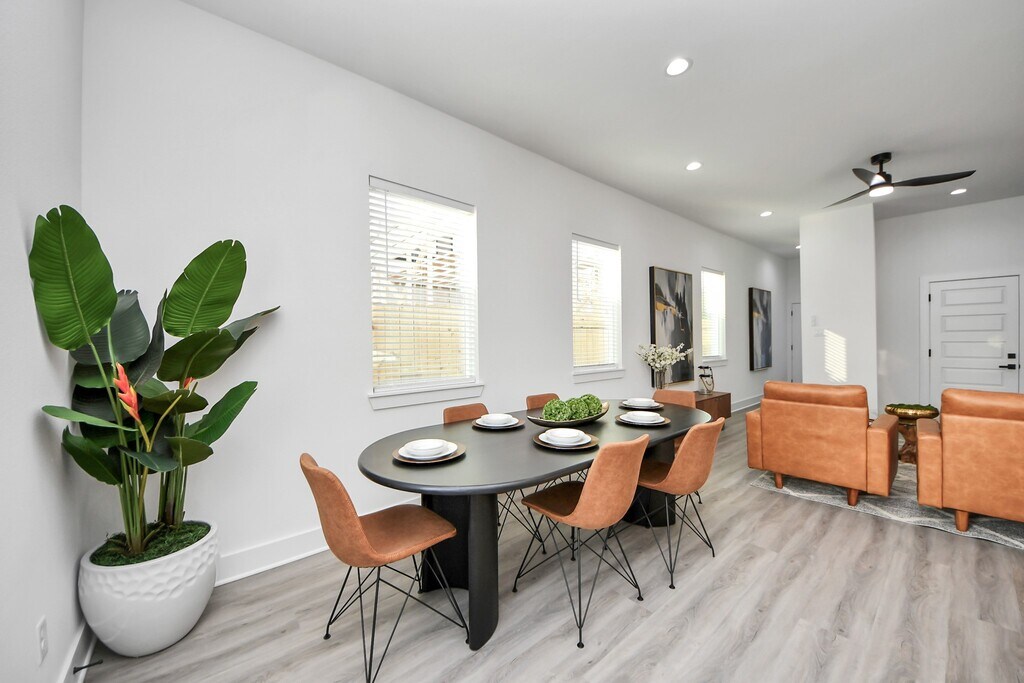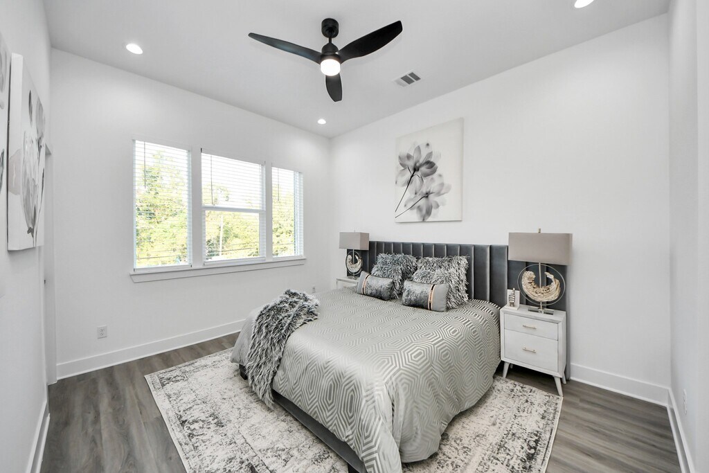 Stunning New Construction Duplex offering modern design and functionality. Each unit features 3 spacious bedrooms,2.5 baths,and an open-concept layout with 10’ ceilings. Gourmet kitchens include quartz countertops,tile backsplash,large islands with breakfast areas,stainless steel appliances,ample cabinetry,and walk-in pantries. Enjoy luxury vinyl plank and tile flooring throughout. Additional highlights: mud bench at entry,study nook/work space,and an attached garage. Upstairs,primary suites feature en-suite baths with double sinks and frameless glass showers; secondary baths also offer dual vanities. Property is fenced in with a driveway gate. Perfectly situated just minutes from NRG Stadium,the Texas Medical Center,and with quick access to Hwy 610 and Hwy 288. Tenant to confirm all room dimensions and assigned schools. MLS# 68570199