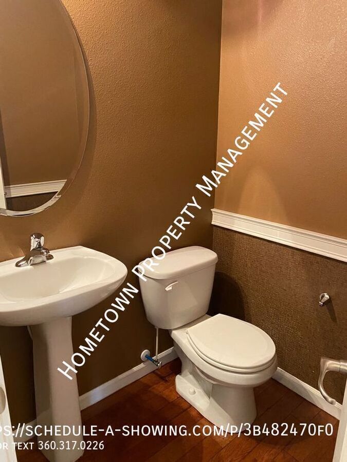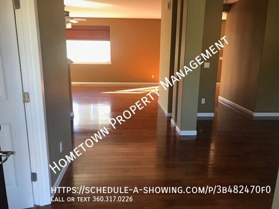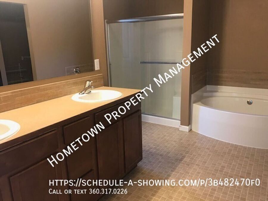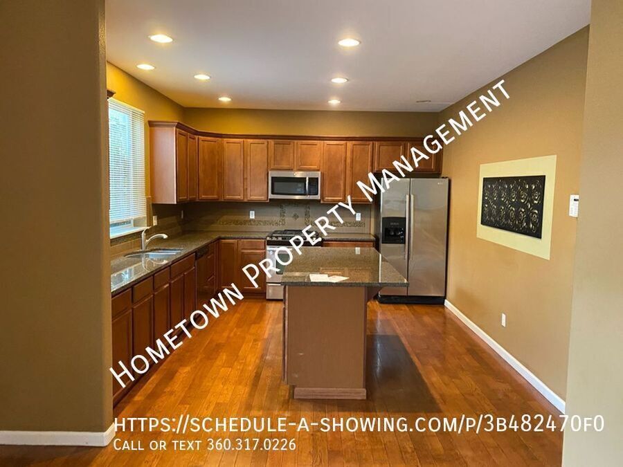This stunning, oversized home in the Freestone Station neighborhood offers an unbeatable combination of comfort, style, and convenience. Featuring real hardwood floors throughout the main level, this home boasts a large living room with a cozy gas fireplace, perfect for those relaxing evenings. French doors open into a bright, versatile office space, while the formal dining room provides an elegant setting for meals and gatherings. With 4 spacious bedrooms plus a generous bonus room, this home provides plenty of room for everyone. Three and a half well-appointed baths ensure both comfort and privacy for the whole family. The fenced backyard is perfect for outdoor activities, and the attached 2-car garage provides ample storage space. The chef’s kitchen is a true standout, with gleaming granite countertops, a breakfast bar, walk-in pantry, and an additional butler's pantry—ideal for storing kitchen essentials or prepping your next meal. All stainless steel appliances are included, and the convenient laundry room with washer hookups and dryer (included "as is") adds extra functionality. The luxurious Master Suite features an additional seating area, perfect for quiet moments or reading, and a stunning 5-piece master bath with double vanities, a separate shower, and a relaxing garden tub. The enormous two-sided walk-in closet offers an incredible amount of storage space. Outside, you’ll enjoy the privacy of your fenced backyard, and with a neighborhood park directly across the street, there’s plenty of space for play, relaxation, and enjoying the outdoors. Don’t miss out on this incredible rental opportunity—schedule a tour today and make this home your own! **NO PETS - NO ROOMMATES - NO SMOKING** 12-month minimum lease. Great location, close to parks, shopping, and area amenities. Minutes to freeway, 15 min to JBLM. To schedule a no contact showing, call/text , or use the link below: