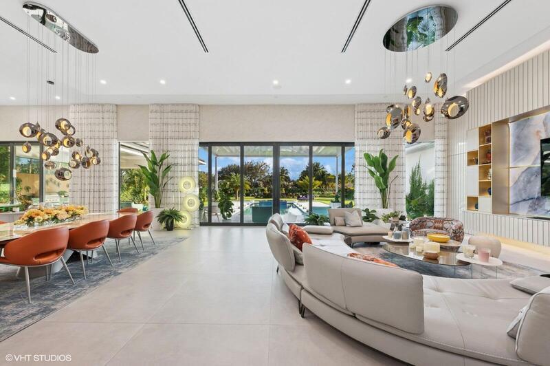 Courtesy Of The Keyes Company. Exceptional modern one level house sitting on an over 1-acre private lot with beautifully designed landscaping. Your own private oasis just minutes from major shopping and dine out destinations. The house features a custom kitchen, spacious open living area, 6 ensuite bedrooms, office/den room, plenty of storage and a generous main bedroom situated in its own private wing of the house with its own double bathroom and custom walk-in closets. Set in a private impeccably maintained man gated community with 24-hour security on site.