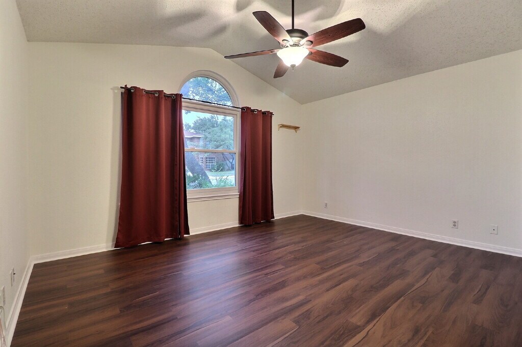 Settle into this inviting single-story home surrounded by mature shade trees and a comfortable outdoor space ideal for relaxing or casual gatherings. The layout includes a formal front living/dining area that opens into a spacious family room featuring a vaulted ceiling and a brick fireplace as the focal point. Luxury vinyl plank flooring throughout the main living areas and tile in wet areas provide both durability and low maintenance appeal. The kitchen offers abundant cabinet and counter space, a breakfast nook with bay window, and a full appliance package including range, microwave, and dishwasher. As an added convenience, the home also comes with a refrigerator, washer, and dryer-making move in simple and stress free. Convenient access to many desired locations across San Antonio, to include being minutes away from Alamo Ranch for shopping, dining and entertainment. Available for immediate move in. Take the next step-contact our office today to schedule a showing.