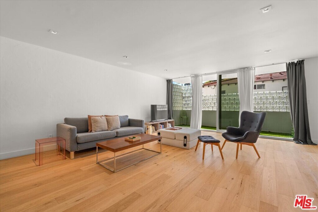 Discover modern comfort in this charming 2-bedroom, 2-bathroom end-unit condo nestled in the heart of Santa Monica! This inviting home features an open floor plan with elegant hardwood floors and recessed lighting throughout. Brand-new windows infuse every room with natural light. The living room opens to an outdoor patio, while the dining area flows seamlessly into the living space, complete with a wine fridge for your entertaining pleasure. The kitchen is a culinary haven, equipped with Bosch appliances, high-end coffee maker, and an electric stove, with a convenient gas connection also available. The primary suite serves as a sanctuary, boasting a spacious bedroom, dual sinks, a luxurious rainhead shower, and a large walk-in closet. Additional conveniences include an in-unit washer and dryer. Situated in a charming 14-unit building, this condo offers two parking spaces and storage in the garage area. Experience a blend of style and convenience in this Santa Monica gem, just blocks away from Montana Avenue's best shopping, restaurants, and only moments from the beach and top-rated schools. MLS# 26652725