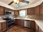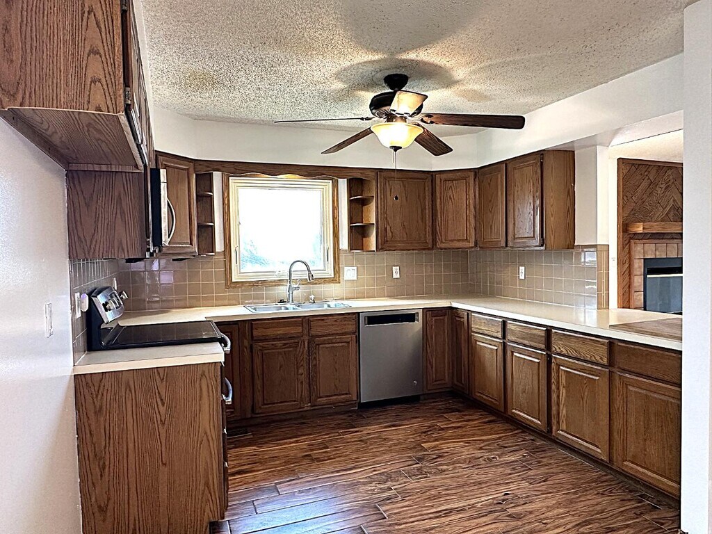 Many great features in this 4BR, 3BA home with open plan, vaulted ceiling & beautiful tile floors that look like hardwood! Woodburning fireplace with gas starter is a central focal point highlighting the living room. This home also offers large dining space that allows for extra large tables without detracting from the room. Kitchen looks into the living room & features a large built-in pantry cabinet. The main floor laundry offers plenty of storage as well. Master bedroom contains a wall of closets & a private 3/4 master bath. Spacious rec room with walk-behind wet bar for entertaining. Extra room would make a great office or playroom. Huge basement 4th bedroom could double as a master suite with 2 walk-in closets & access to the 3rdbath with separate shower & circular jetted tub with heat lamp. Some extras include: large 12x16 storage shed. Many great features in this 4BR, 3BA home with open plan, vaulted ceiling & beautiful tile floors that look like hardwood! Woodburning fi...