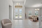 Welcome to Robyns Cove at Epperson! Built by Biscayne Homes,this charming contemporary pool home offers modern living at its finest. The Bismark 3 floor plan home features six bedrooms,four full bathrooms plus a powder room/half bath,a screened-in salt water pool,three garage spaces,a large bonus room on the second floor with balcony and a view of the pond. Upon entering the foyer,your first stop is the flex room on the left,currently staged as a second living room,but can also be a home office,etc. Featuring an incredible kitchen with quartz countertops,double ovens,apron style sink,modern cabinetry,an electric cooktop,a walk-in pantry and stainless steel appliances. This kitchen is upgraded with additional cabinetry and a third cabinet space with dry bar that includes wine storage and double mini beverage coolers. The open kitchen faces the dining room,living room and oversized sliding glass doors that lead to the pool and covered lanai. The flooring includes ceramic tile on the first floor with carpet in the bedrooms,luxury vinyl plank on the stairs and carpet in the bonus room. Four of the six bedrooms are on the first floor,including the Owners Suite,two bedrooms with a "jack & Jill" bathroom,and the fourth bathroom separate from the rest of the house (idea for multigenerational living).The Owners Suite has a view of the pond,a spacious Owners bathroom,including double sinks and a bathtub plus separate walk-in shower,with and oversized walk-in closet. The second floor has two bedrooms (total 6),with a secondary "jack and Jill" bathroom that has separate sinks for each. The whole home is upgraded with shutters and all bedrooms have ceiling fans. The salt water pool is surrounded with a paver deck and a beautiful view of the pond. This home has a north facing front door,which means you get a view of the sunrise and sunset from the pool area. Welcome to Florida! You get to enjoy pink and purple sunsets every day! Life at the Lagoon is like nothing else. This home is in close proximity to Publix Plaza at Innovation Springs,Starbucks and Chick Oil-A. The Epperson HOA includes cable + the fastest internet in the nation,Ultra-Fi. The closest Elementary Schools are In Prep Academy,Watergrass Elementary & Wesley Chapel Elementary,and Kirkland K-8. The closest middle school is Thomas Weightman Middle School. The nearest high schools are Kirkland Academy of Innovation High School and Wesley Chapel HS. The community features “Street Leaf” lights,home of the first Crystal Lagoon,where Residents have access to Elam Park & the dock at King Lake,paddle boarding,dog parks,and golf cart paths,kayaking,a wibit obstacle course,Cabanas,AquaBanas,Sandy Beaches,Live Music Events,Swim Up Bar and Resident Only Events. The Lagoon is like an Outdoor Clubhouse. The Holiday/Seasonal Events include Trivia Night,Family Night,Movies on the Lawn,Sounds of Summer (live music series),Karaoke,Pumpkin Patch in November,Golf Cart parades,Cinco de Mayo Resident only celebration,Fourth of July Resident Only celebration and much more. This home is located about 10 minutes away from KRATE (the new outdoor mall),35 minutes north of Downtown Tampa,45 minutes from Tampa International Airport,and 90 minutes from Orlando and Walt Disney World. You are ready for LIFE AT THE LAGOON! MLS# TB8437713