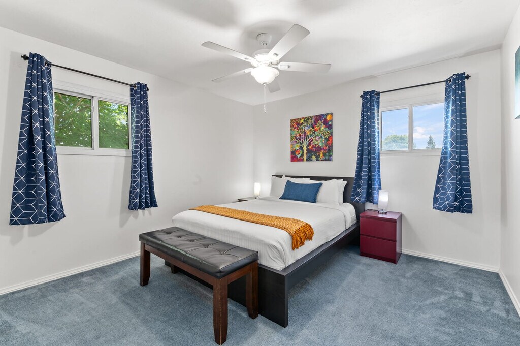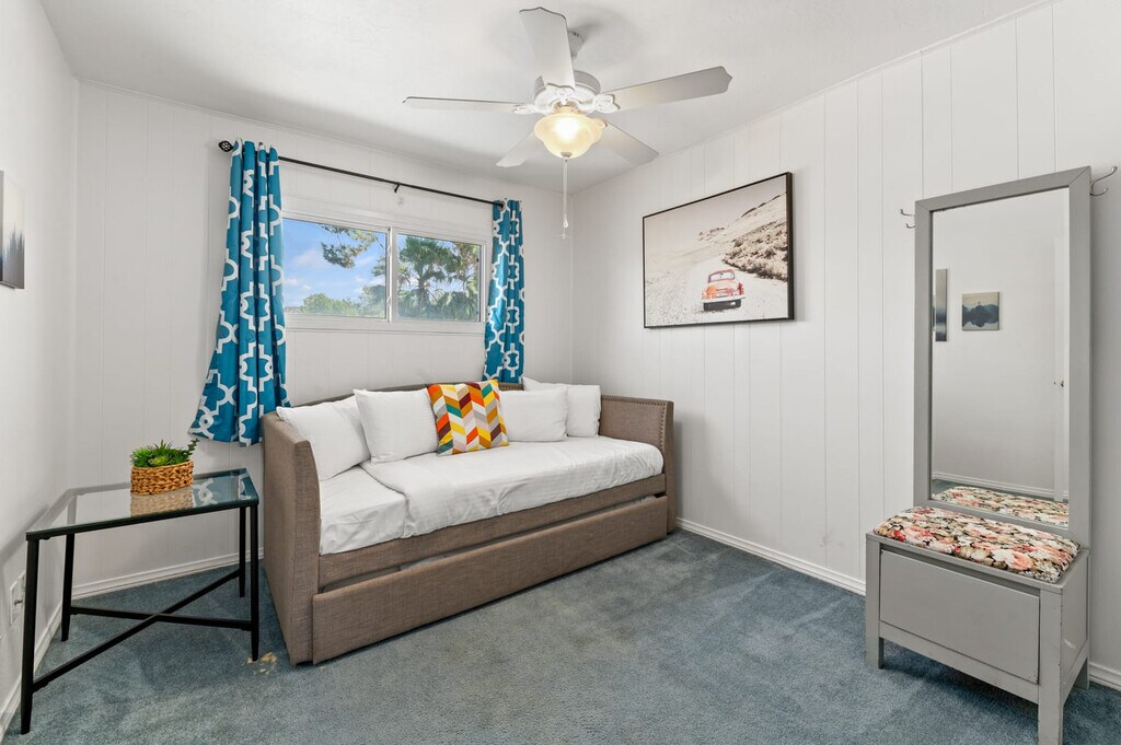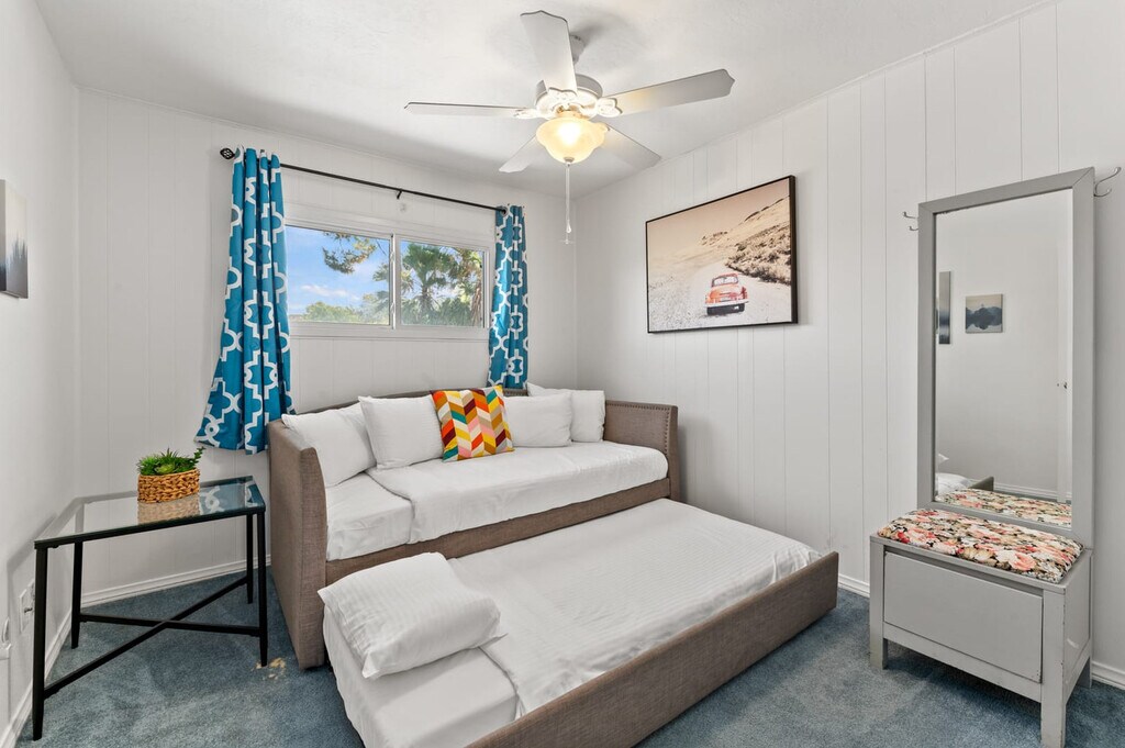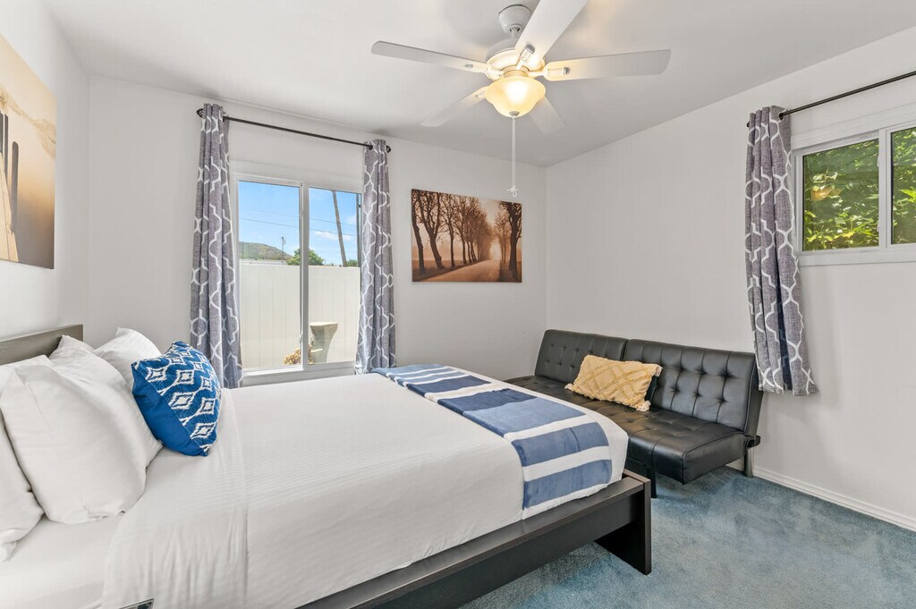 This modern and comfortable single-story home offers a serene escape in a quiet neighborhood setting. With a large living room, a fully equipped kitchen, and washer/dryer facilities, you'll feel at home from the moment you arrive. Enjoy outdoor seating and dining in the backyard, perfect for relaxation. The home features an extra-large double bed, two large double beds, and two single beds, comfortably sleeping up to eight guests. The most comfortable bed ensures a restful night's sleep, and you'll find Wi-Fi, TV, and air conditioning for your convenience. Garage and driveway parking are also available. Garage and driveway parking are available for your convenience. Nestled in a quiet neighborhood, this home is within walking distance to local parks and trails. Santee is known for its close-knit community, offering weekly movies in local parks during the summer. Attractions such as Santee Lakes Recreation Preserve, Mission Trails Regional Park, and Santee Town Center are just minutes away, making it a fantastic base for exploring both the natural beauty of the area and enjoying convenient access to wider San Diego attractions. No parties, no smoking, and no pets are allowed. The owner lives in the neighborhood and can quickly respond to guest needs. Self-check-in is provided for a completely contactless experience, and the owner is available to help answer any questions prior to and during your stay. San Diego requires all guests to sign a Good Neighbor Policy document prior to staying, which can be done online. Please be mindful of the newly planted landscaping and irrigation, and enjoy the large patio space without driving over the dirt or plants in the front.